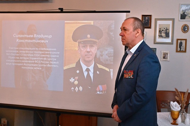 18 февраля город Козельск принимал легендарного полковника ФСБ Владимира Константиновича Силантьева, отдавшего 37 лет защите Родины в самых сложных и секретных операциях, в том числе в рядах подразделения спецназа ФСБ » Вымпел». Патриотическая встреча-беседа жителей города с ветераном боевых действий прошла в литературном кафе «Все в садъ». В беседе принял участие клирик Успенского кафедрального собора иерей Евгений Чуркин.