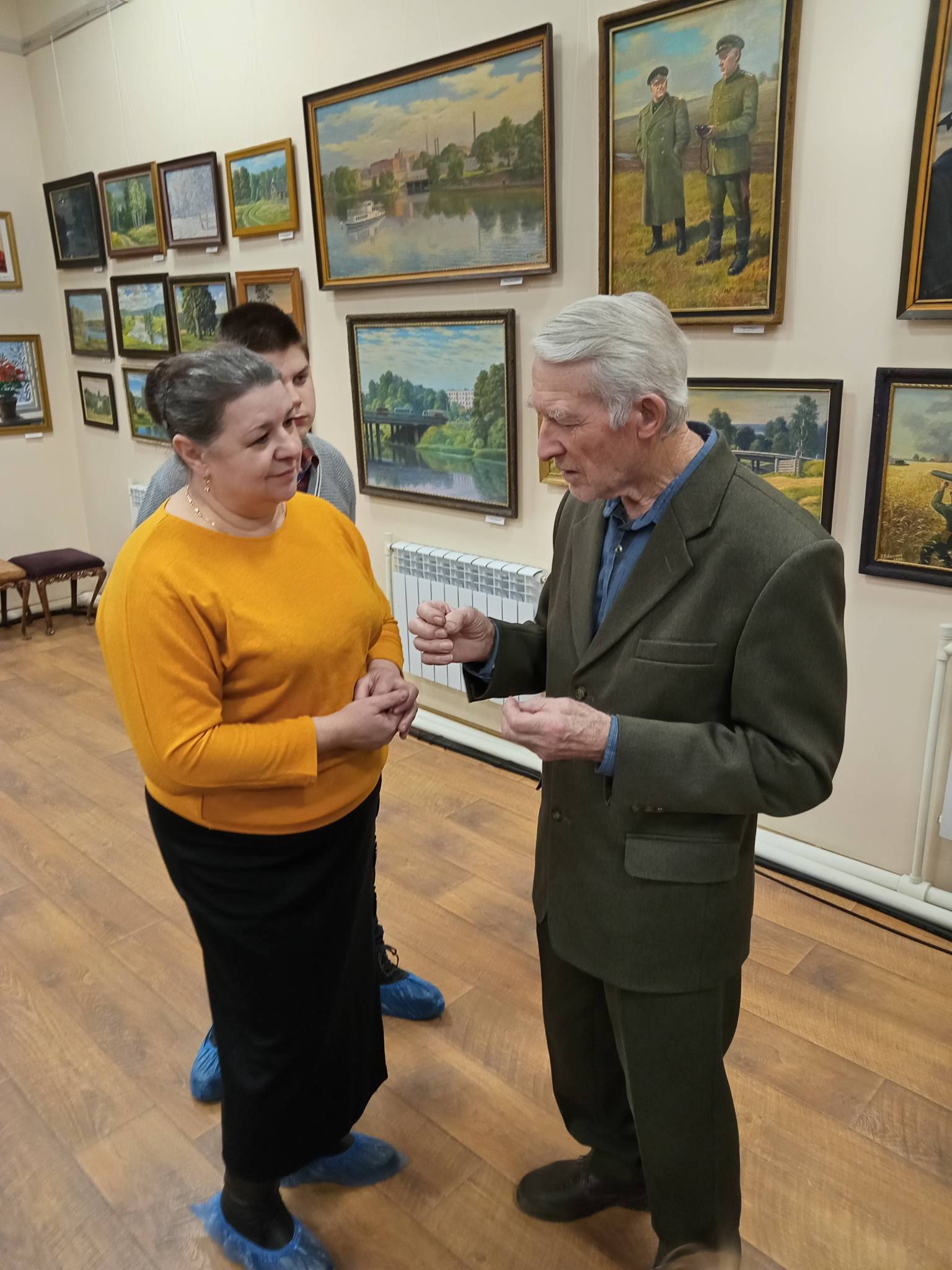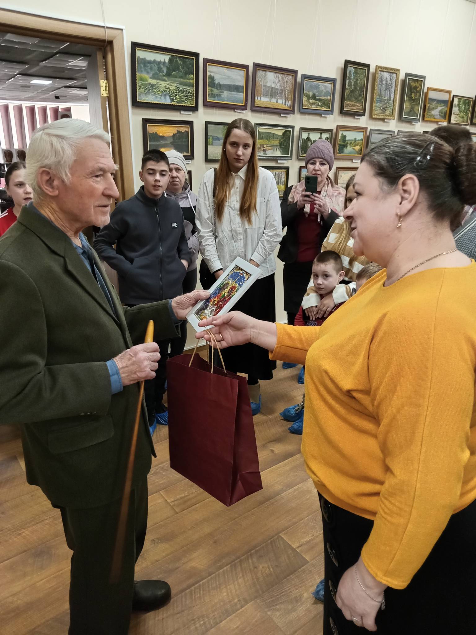 Весь этот вечно живой мир Валерий Олегович пишет с душой и глубоким знанием природы. Людиново — уголок той самой России, которую так любит Хованский. Все картины Валерия Олеговича объединяет большое трепетное чувство любви к Родине. Его полотна как бы призывают всех нас: «Наполните свои сердца щедрой красотой земли Людиновской». После просмотра видеофильма «Певец Людиновской земли» (Валентины Прониной и Валерия Деменченкова) художник провел незабываемую экскурсию. Рассказ о военном времени, путешествие по разным уголкам нашей страны и родного края. Его излюбленные места на озере Ломпадь и реке Болве никого не оставили равнодушными. Поблагодарив и поздравив Валерия Олеговича с праздником, дети еще долго не отпускали художника, задавая интересные вопросы, рассматривая картины и этюды, делясь своими впечатлениями. В журнале ребята написали слова благодарности: «Большое спасибо за то, что показали нам ваши работы и ваш труд. Спасибо, что вдохновляете нас следовать вашему примеру. Спасибо за то, что показываете нам красоту нашего Людиновского края.» Огромное спасибо директору музея Елене Витальевне Башкировой за теплый прием и организацию встречи с замечательным художником, интересным человеком и собеседником.