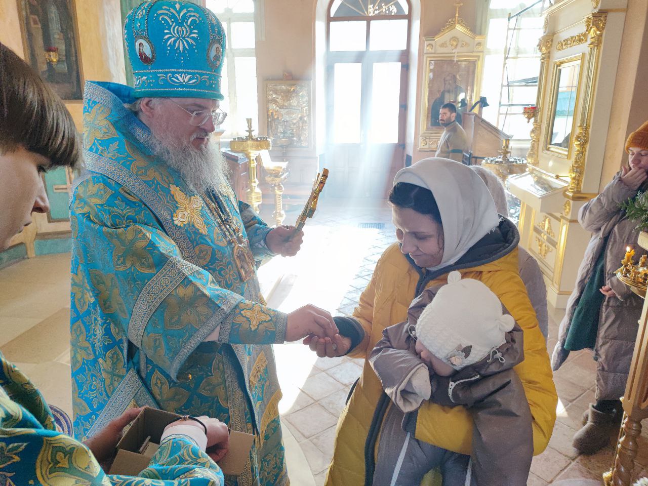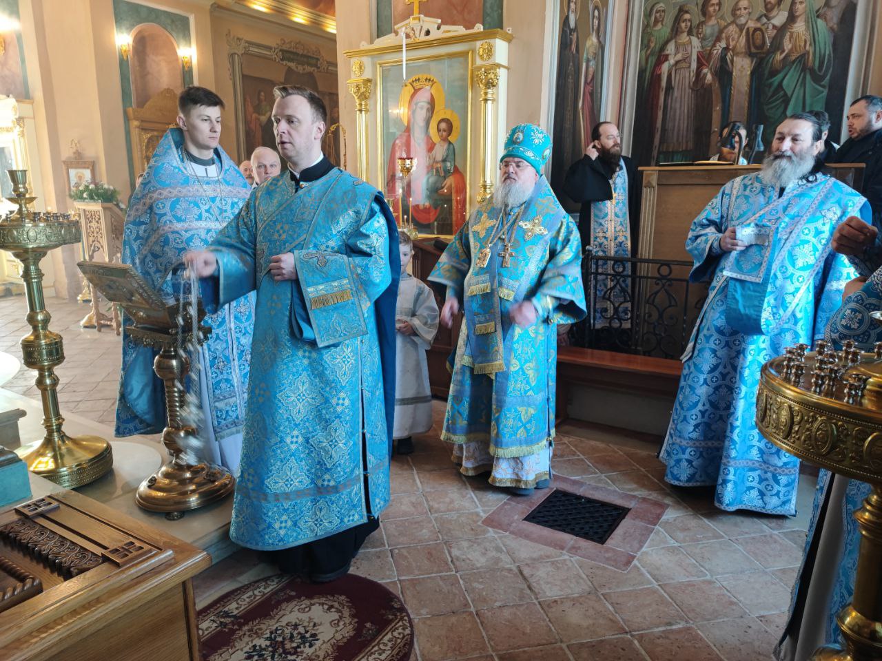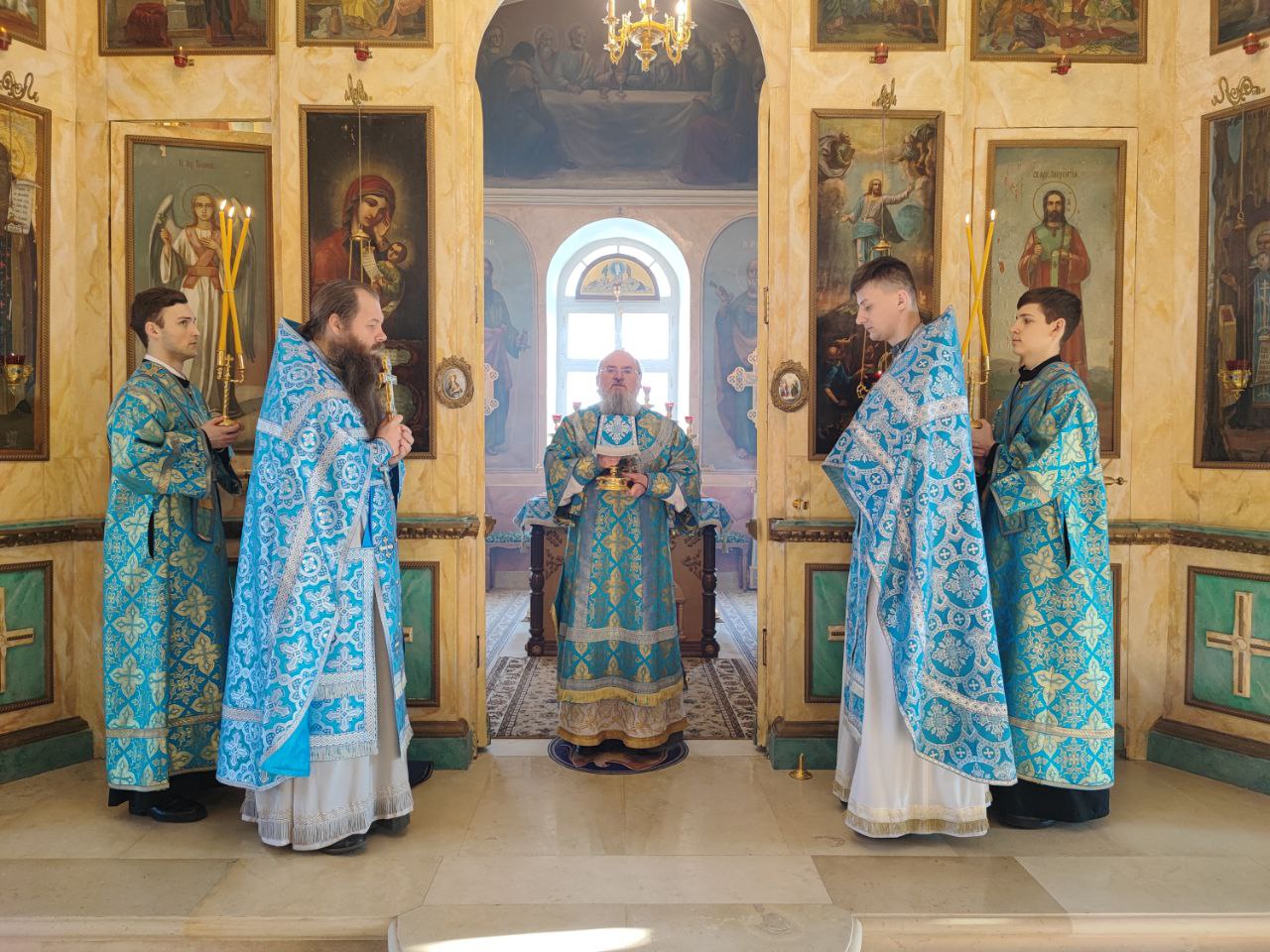 Архипастырю сослужили: настоятель храма иерей Тихон Худяков, иерей Симеон Худяков, иерей Филипп Лисенков, иерей Евгений Чуркин, диакон Евгений Ковригин и диакон Валерий Волков.