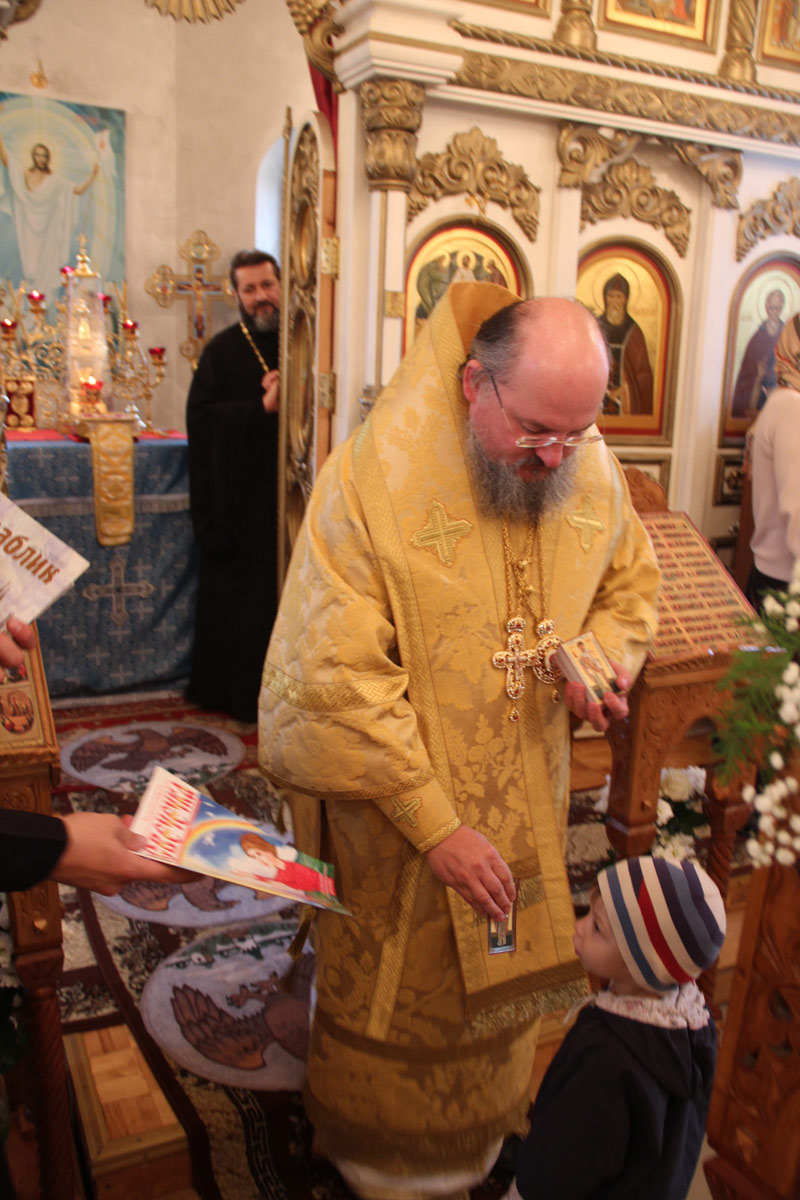 Его Преосвященству сослужили: благочинный округа протоиерей Иоанн Староста, настоятель храма иерей Дмитрий Гаврилов, иерей Антоний Хатунцев, диакон Евгений Ковригин и диакон Тихон Худяков. После отпуста литургии священнослужители совершили молебен Божией Матери, а затем владыка обратился к богомольцам со словом назидания.