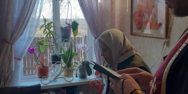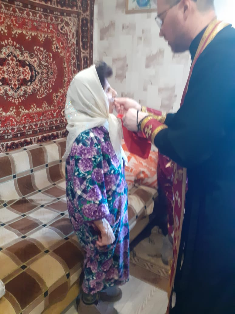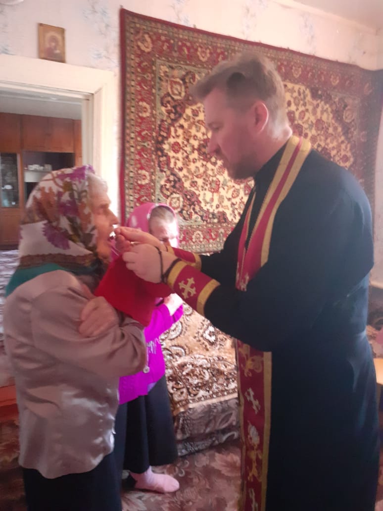 Благочинный Хвастовичского округа Козельской епархии посетил больных и немощных прихожан и приобщил их Святых Христовых Тайн