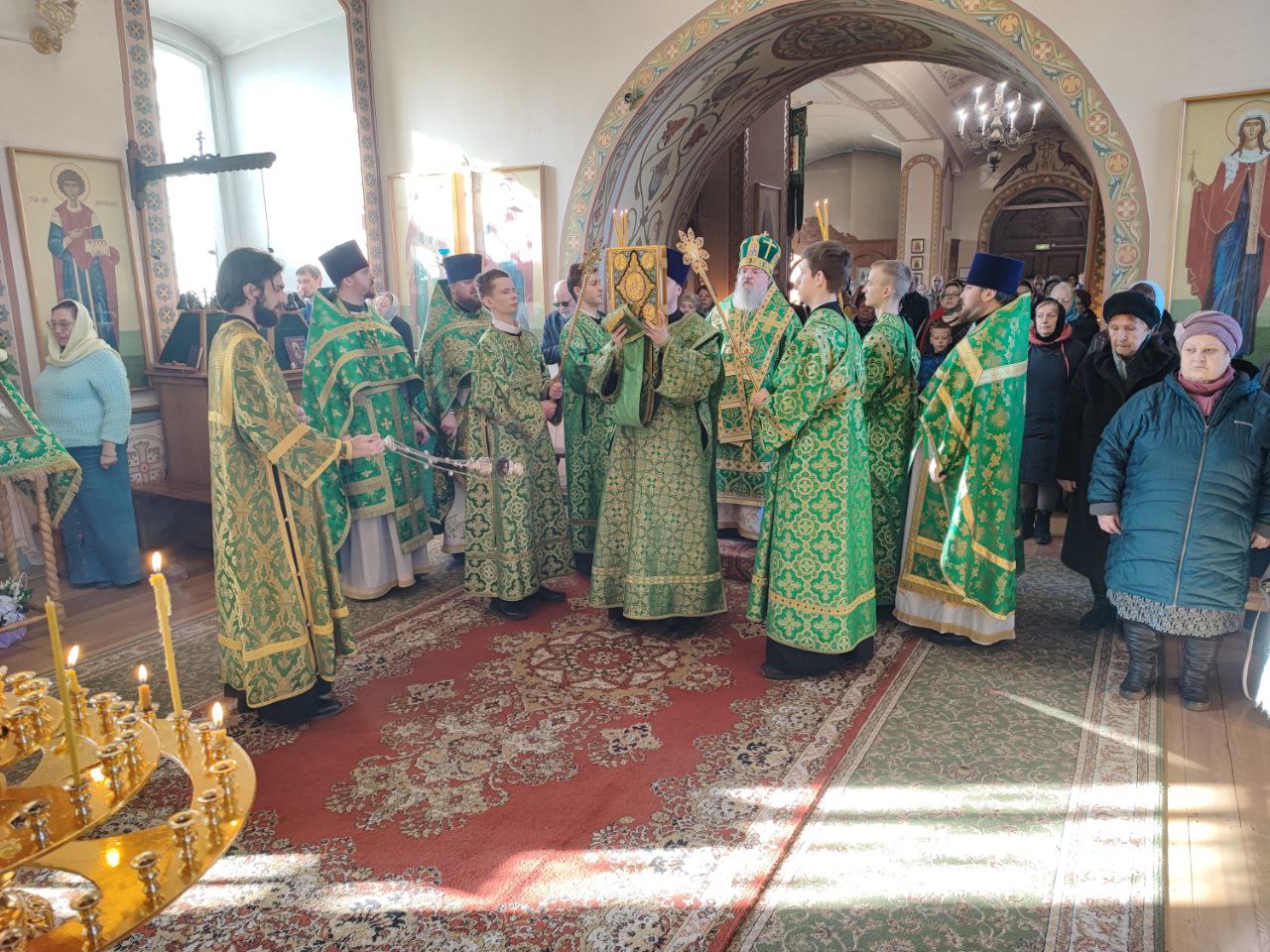 8 марта. Суббота первой седмицы Великого поста. Обретение мощей святой блаженной Матроны Московской. Епископ Козельский и Людиновский Никита совершил Божественную литургию святителя Иоанна Златоустого в храме Святого Духа города Козельска, один из приделов которого освящен в честь празднуемой угодницы Божией Матроны. Архипастырю сослужили: настоятель храма протоиерей Сергий Сычев, протоиерей Антоний Хатунцев, иерей Виктор Носов, диакон Евгений Ковригин и диакон Дамиан Рупасов. За богослужением были вознесены особые прошения и молитва о Святой Руси. По благословению Святейшего Патриарха Московского и всея Руси Кирилла эта сугубая молитва совершается во всех храмах Русской Православной Церкви. По отпусте литургии было совершено славление блаженной Матроне Московской, а затем владыка обратился к богомольцам с архипастырским словом.