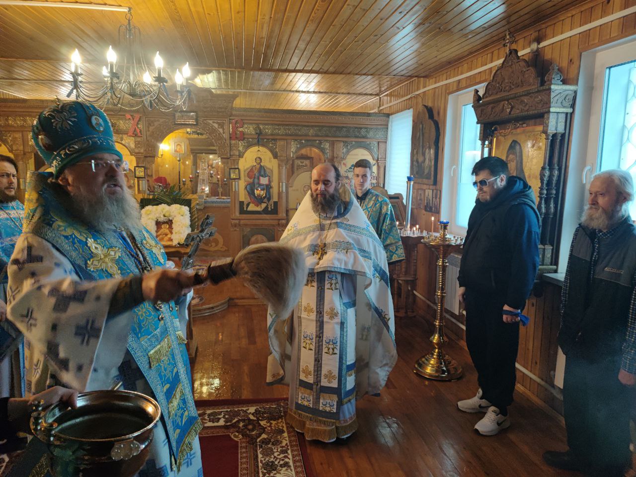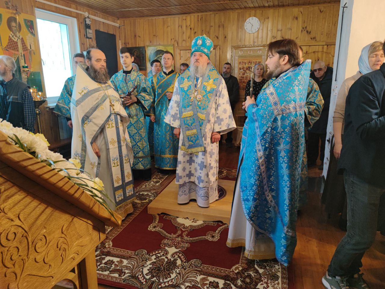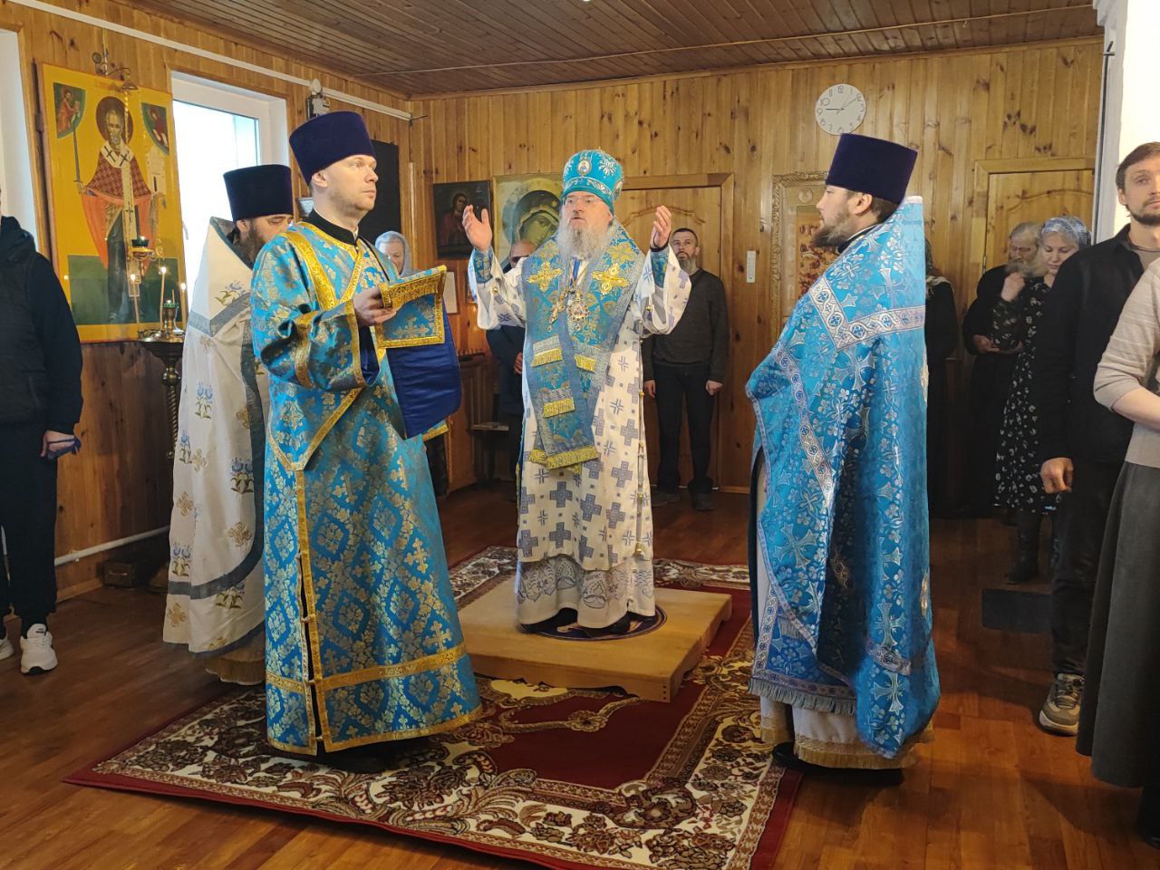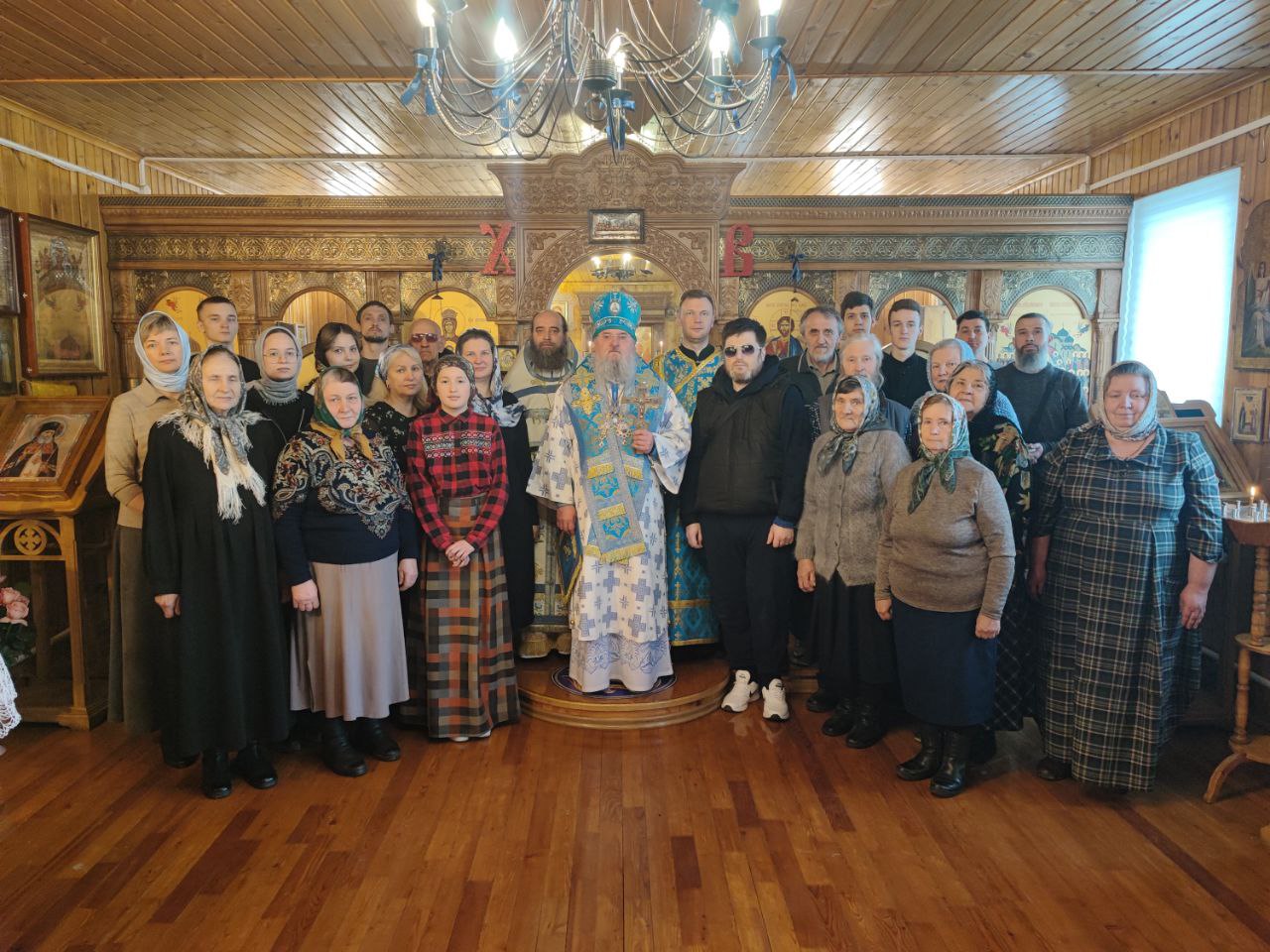 Преосвященнейшему владыке сослужили: протоиерей Дмитрий Сахаров – настоятель прихода, протоиерей Антоний Хатунцев и диакон Евгений Ковригин.