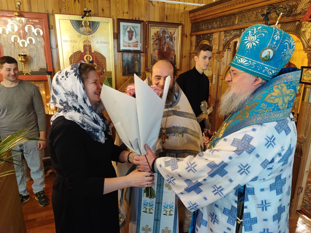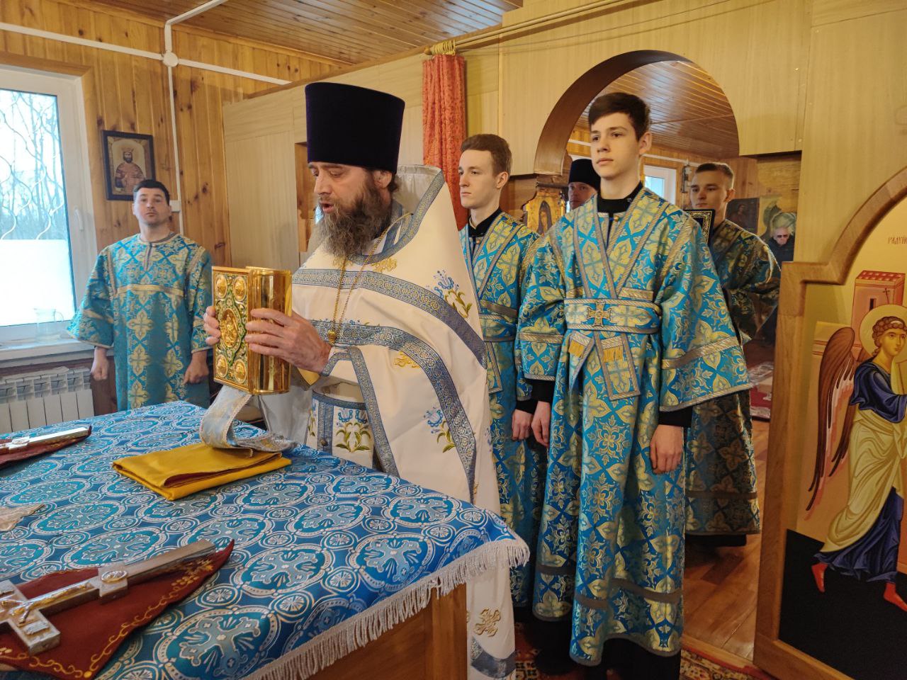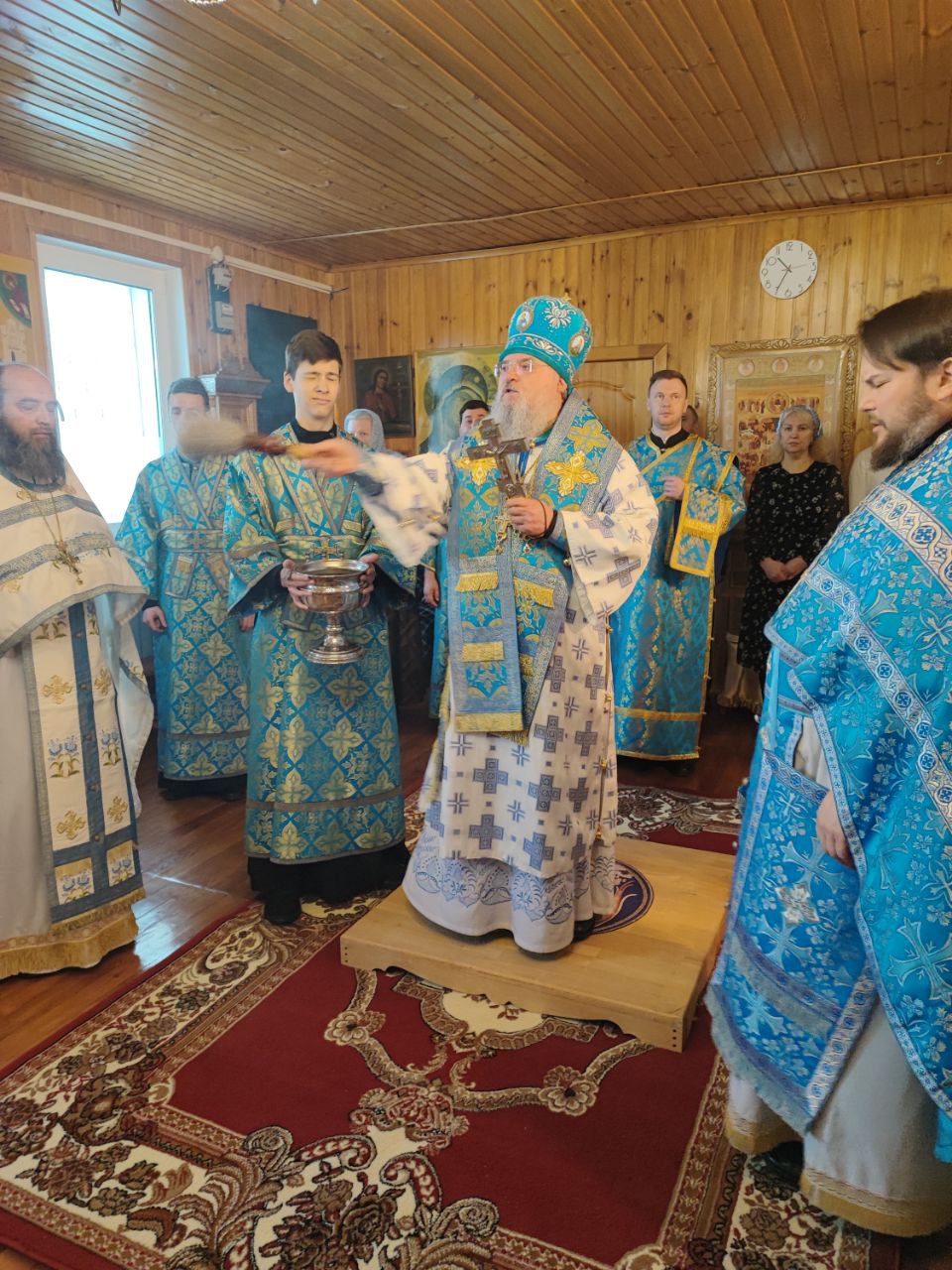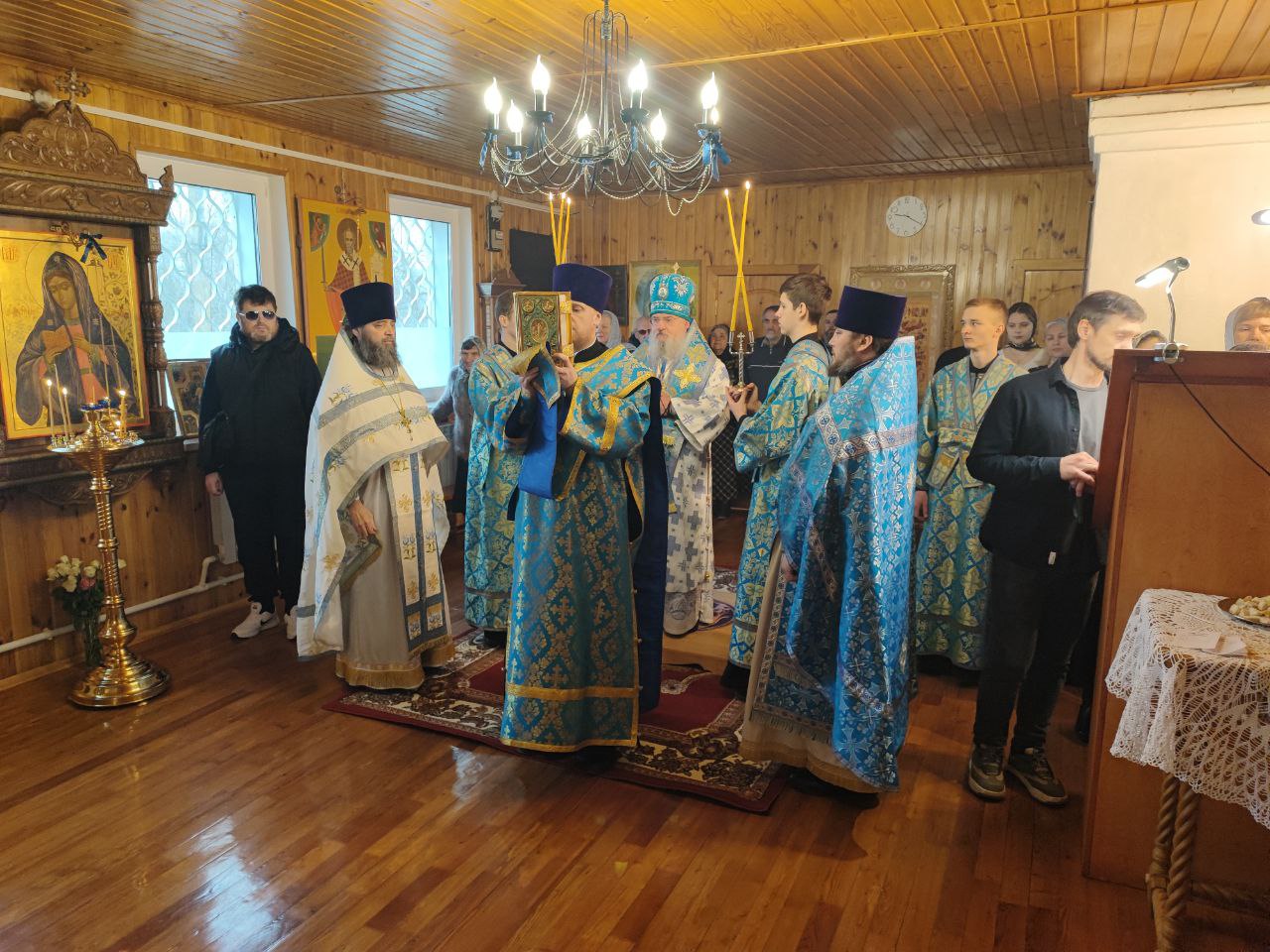 Преосвященнейшему владыке сослужили: протоиерей Дмитрий Сахаров – настоятель прихода, протоиерей Антоний Хатунцев и диакон Евгений Ковригин.