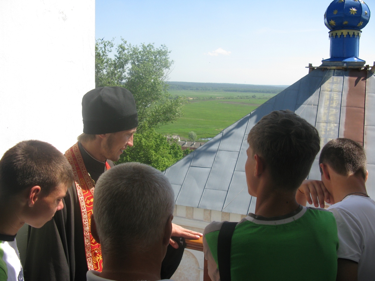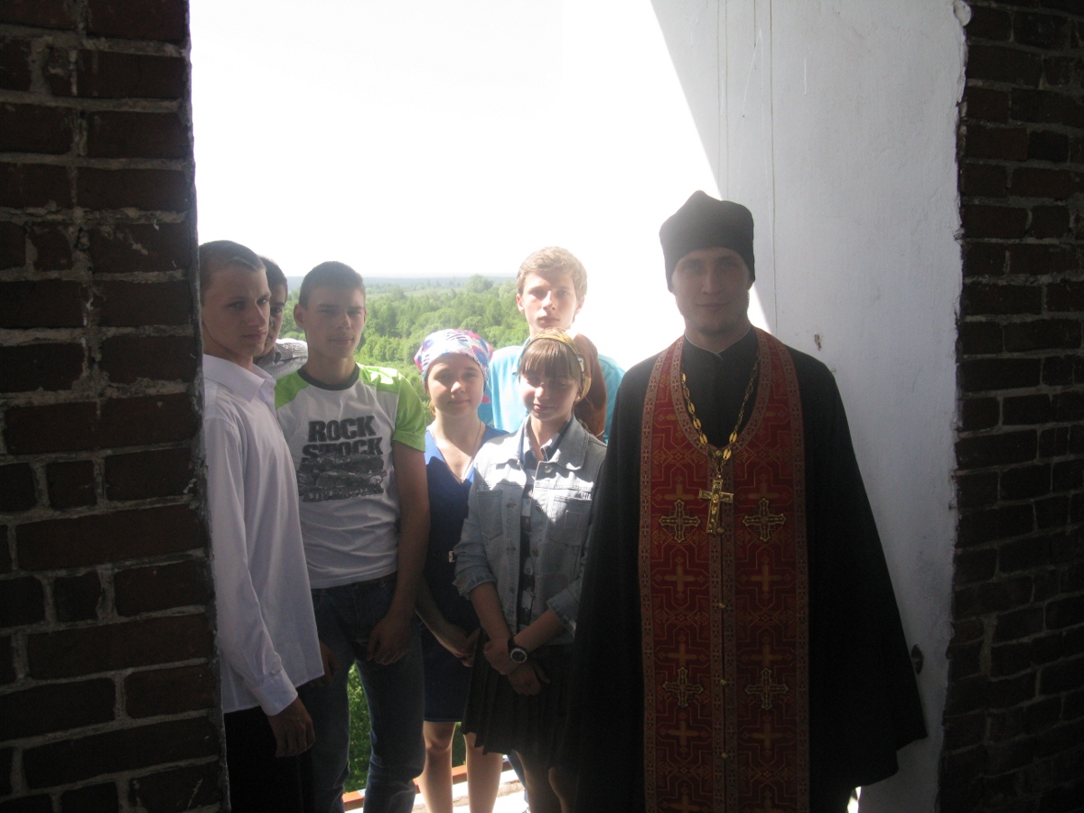 По завершении служения отец Евгений рассказал выпускникам об истории храма, выделил архитектурные особенности, рассказал о иконах находящихся в храме. В ходе экскурсии отец Евгений ответил на задаваемые вопросы и поднялся с выпускниками на колокольню храма.