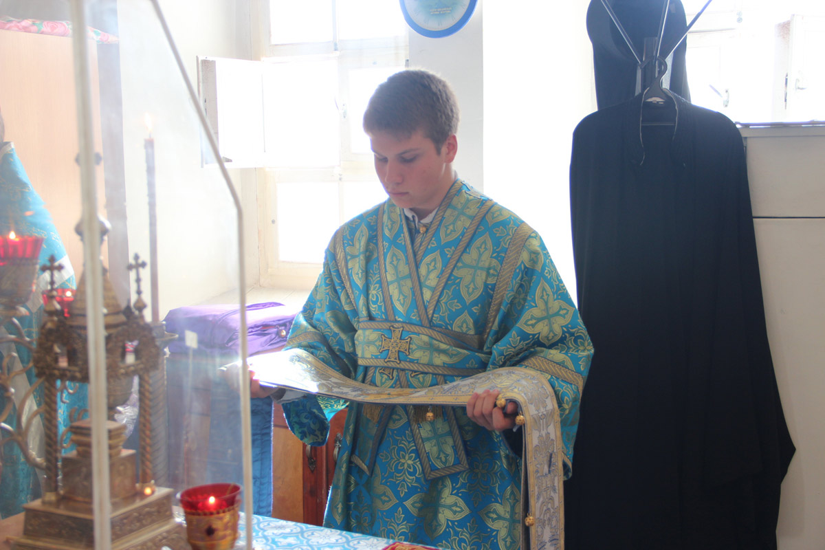 Архипастырь совершил Божественную литургию в Успенском храме, один из приделов которого освящен в честь празднуемого события. Владыке сослужили: благочинный округа, секретарь епархии протоиерей Владимир Бахаев, насельник Оптиной Пустыни иеромонах Роман, иерей Антоний Хатунцев, диакон Евгений Ковригин и диакон Тихон Худяков.