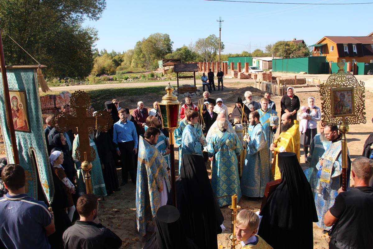 По отпусте литургии состоялся крестный ход к строящемуся храму в честь святой равноапостольной Феклы, у которого владыка прочитал молитву святой первомученице, затем по возвращении в храм, священнослужители и весь народ вознесли молитву ко Пресвятой Деве Марии, после которой архипастырь обратился к богомольцам со словом назидания.
