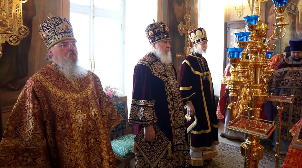 Архипастырям сослужили: игумен Михаил (Семенов); протоиерей Владимир Бахаев; протоиерей Александр Рябов: протоиерей Антоний Хатунцев; иерей Сергий Барыкин; иерей Семен Худяков; иерей Тихон Худяков; протодиакон Алексий Хамтеев; протодиакон Сергий Комаров; духовенство Калужской митрополии.