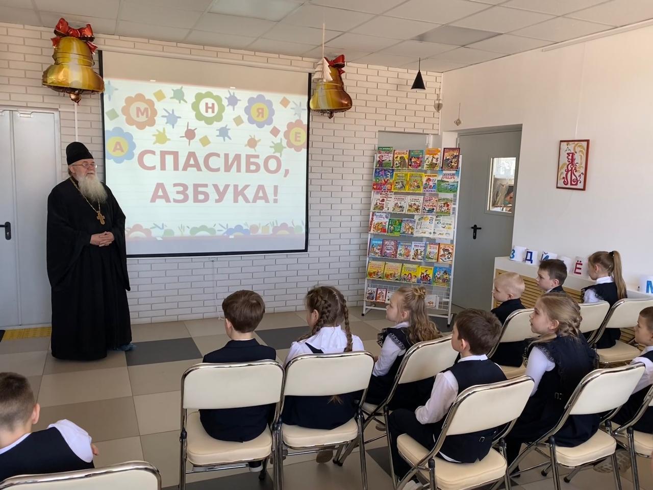 На празднике ребята встретились со сказочным персонажем  Азбукой, которая подготовила для них интересные задания. Первоклассники отгадывали загадки, решали ребусы, составляли из букв слова, делили слова на слоги, находили гласные и согласные звуки. За выполненные задания ребята получали буквы, из которых в последствие сложили слово «ДРУЖБА». Школьники пели песни об Азбуке, разыгрывали сценку «О споре букв». Праздник получился добрым и радостным. Отец Алексий сердечно поздравил ребят  с окончанием важной ступеньки в их жизни, пожелал им старательно учиться, больше читать, чтобы узнавать для себя много полезного и интересного. На память о добром празднике ребята получили книги, которые они теперь смогут прочитать самостоятельно.