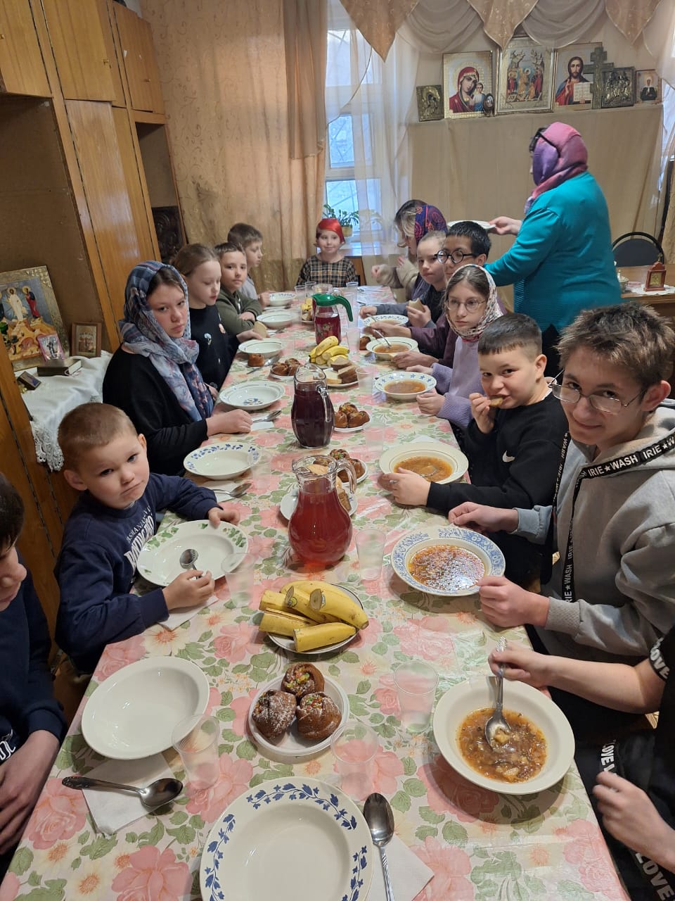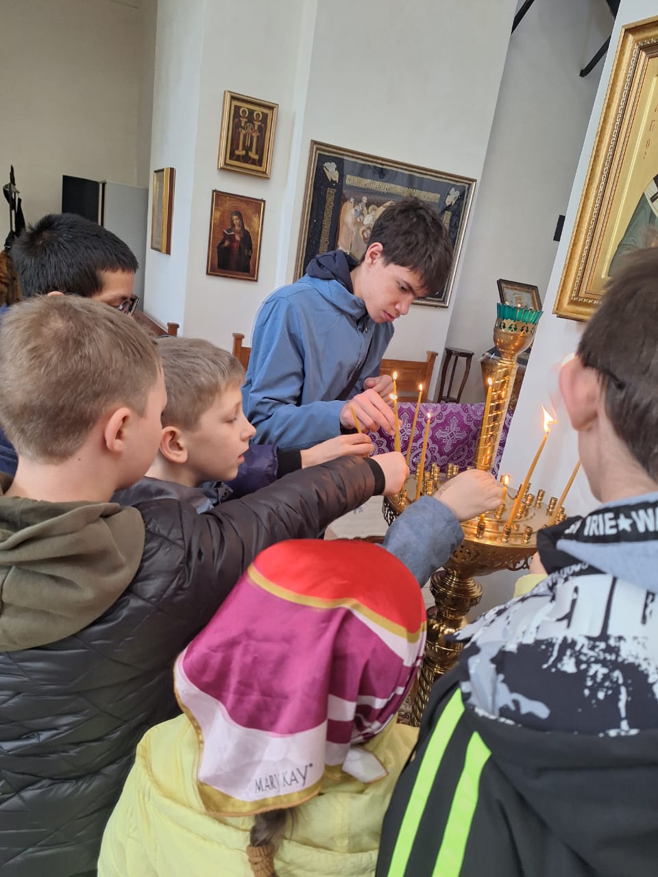 Тем же вечером помолились на вечерней службе в храме Преображения Господня села Нижние Прыски. А утром 23 марта дети посетили Божественную литургию, на которой служили все архиерей Калужской митрополии.
