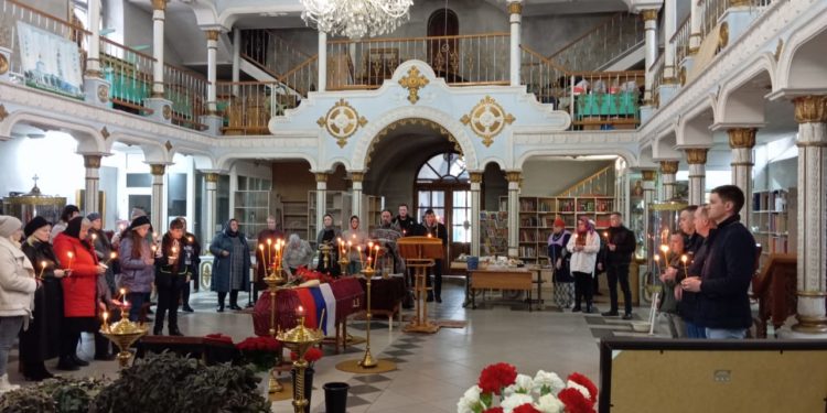 В храме о упокоении убиенного воина Владимира молились родные и близкие, а также официальные лица: глава администрации «Город Людиново и Людиновский район» Стефан Перевалов, глава города Людиново Игорь Синицын, военный комиссар Людиновского и Жиздринского районов Владимир Воронцов, председатель муниципального отделения «Отцы России» в городе Людиново Артём Родичкин и его сопредседатель Сергей Маркасов, прихожане собора и жители города. После чина отпевания отец Георгий выразил соболезнование родным и близким. Он призвал помнить о подвиге воина, молится о его душе в храме, особенно сейчас, когда идет Великий пост, ведь это самое главное, что мы можем совершить в память об убиенном воине.