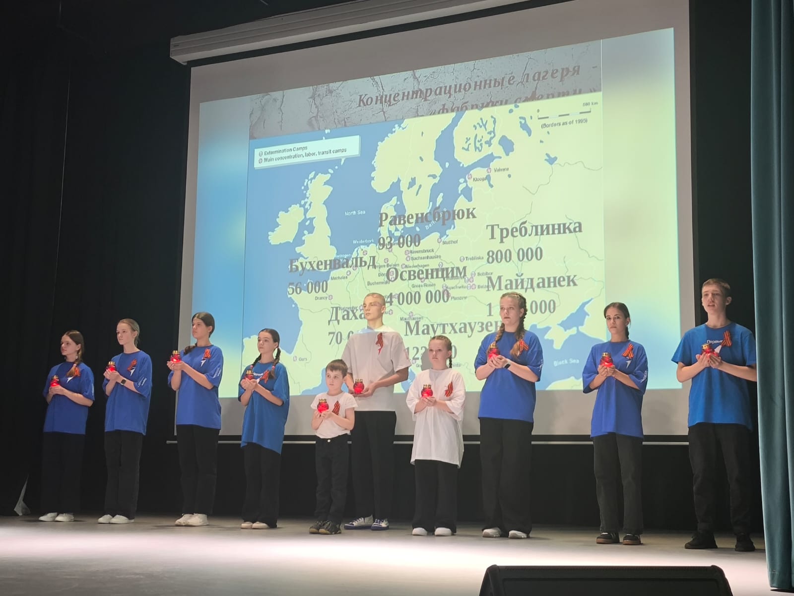 В завершении встречи, в память о погибших несовершеннолетних узниках фашистских лагерей в годы Великой Отечественной войны и взрослые, и дети возложили цветы к памятному месту около Районного дома культуры.