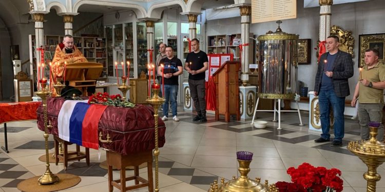 Крестным ходом из храма проводили гроб с телом погибшего воина  в последний путь с пением тропаря Воскресению Христа