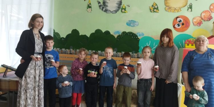 Юным подопечным Центра «Чайка» гостья привезла куличи, которые с любовью приготовила прихожанка храма Елена Якушева. Воспитанники «Чайки» узнали о традиции празднования Светлой Пасхи Христовой, звонили в колокольчики, катали с горки яйца, читали стихи.