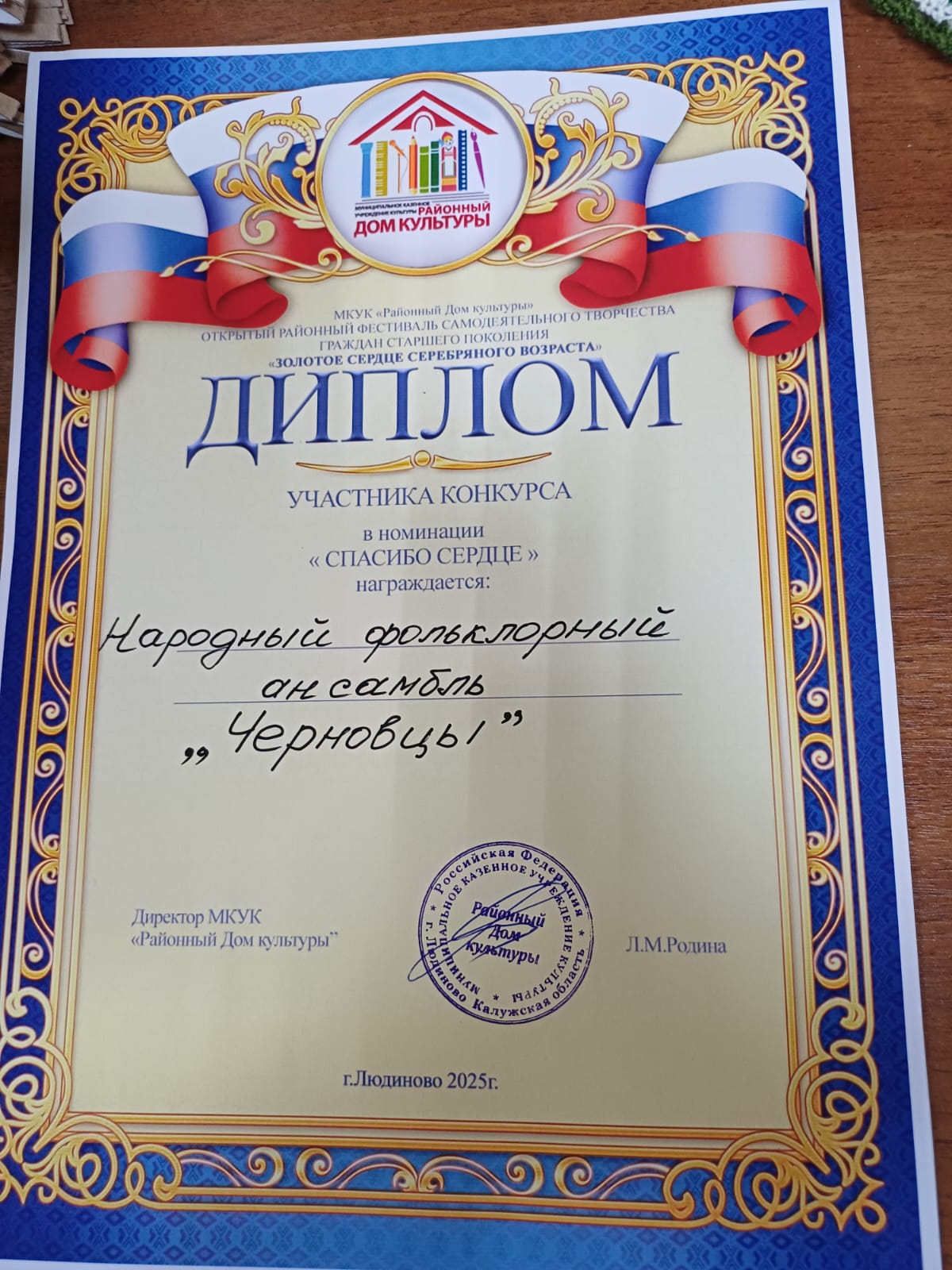 26 апреля 2025 года по благословению благочинного Людиновского округа Козельской епархии, настоятеля Казанского собора города Людиново протоиерея Алексия Жиганова народный фольклорный ансамбль «Черновцы» при Казанском соборе (руководитель Елена Девина) выступил со своей песенной программой на фестивале «Золотое сердце серебряного возраста». Фестиваль прошёл в Районном доме культуры города Людиново для граждан старшего поколения. Цель фестиваля заключалась в том, чтобы сохранить жизненную активность людей старшего поколения и способствовать возрождению и развитию единого культурного пространства, а также сохранению и популяризации народных певческих, танцевальных, волонтёрских и других традиций.