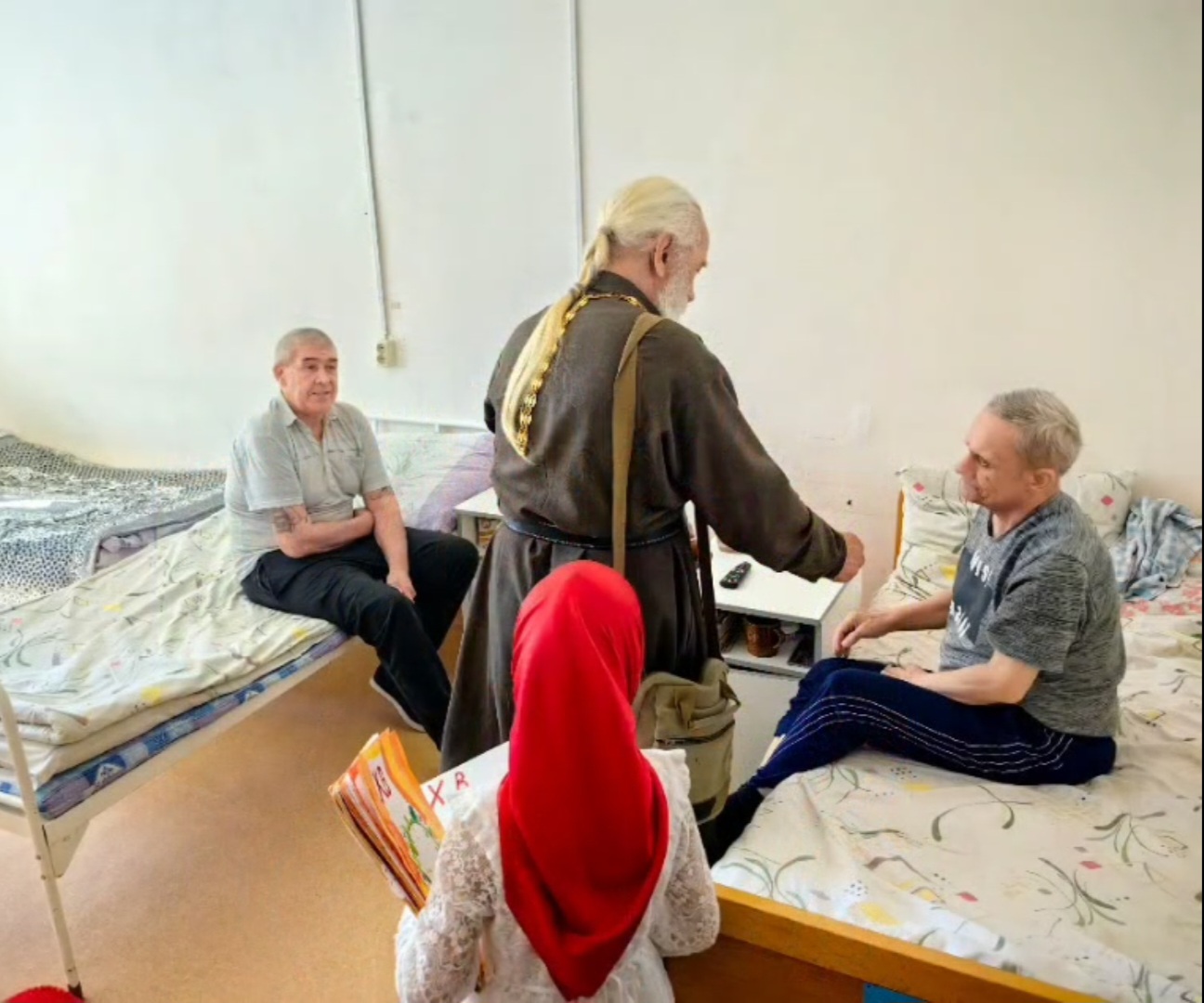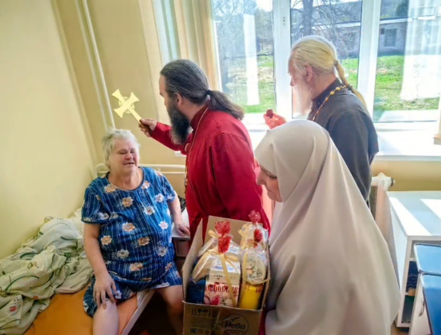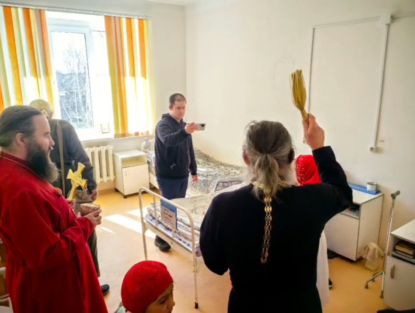 Благочинный Ульяновского благочиния, протоиерей Максим Садовников, настоятель храма Воскресения Христова с. Ульяново, иерей Алексей Сорокин, настоятель храма Казанской иконы Б. М. с. Дудоровский и ииерей  Стахий Гайсин, настоятель храма святых мучениц Евдокии Дарии, Дарии, и Марии Пузовских, с. Уколица, заходя в палаты с любовью приветствовали всех пациентов  радостным восклицанием — Христос Воскресе! И пели тропарь Пасхи!