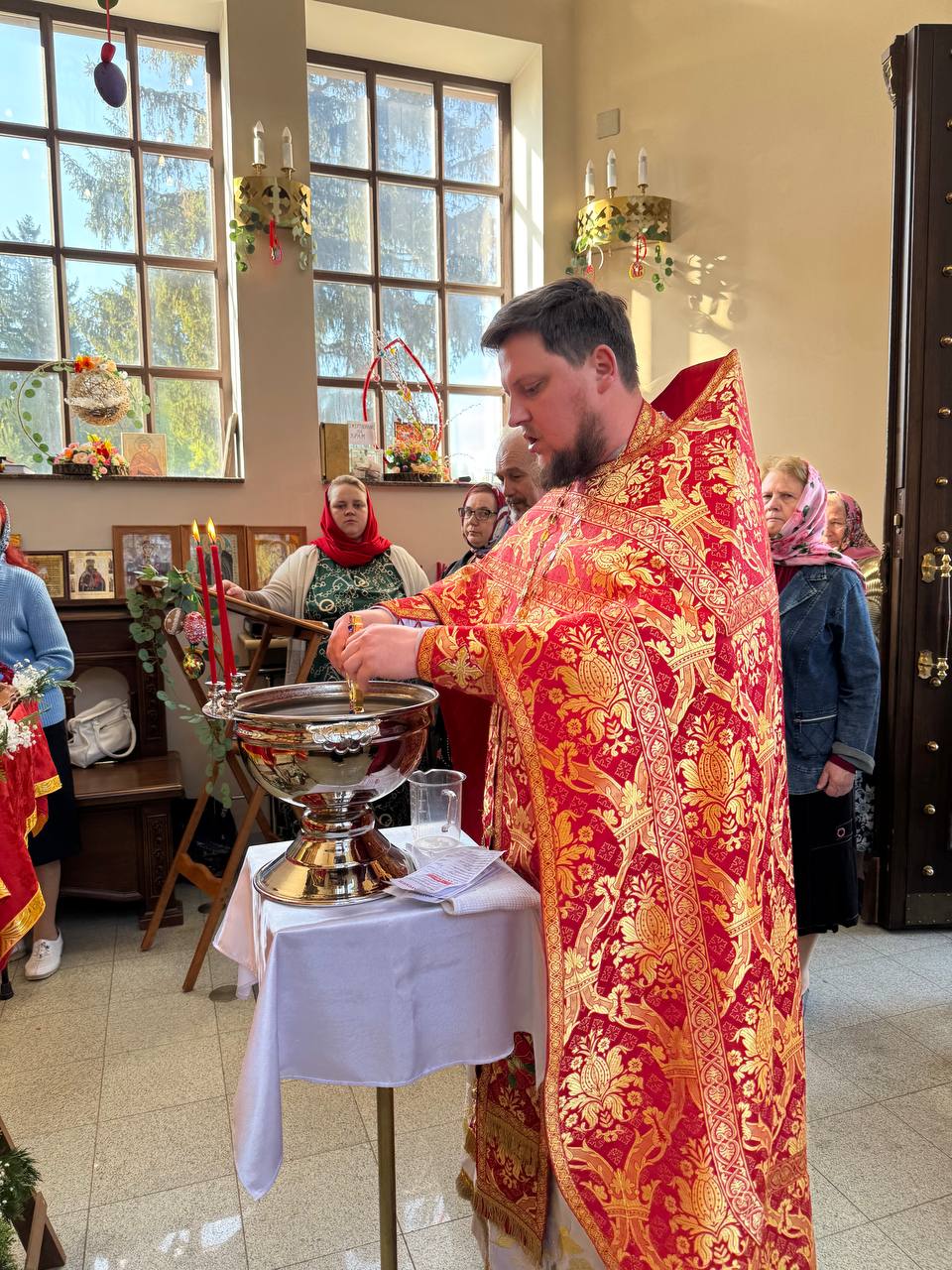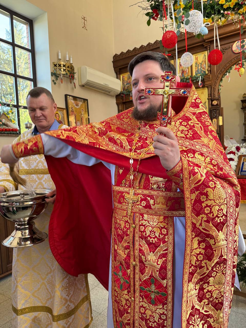 25 апреля торжественно отметили престольный праздник храма в честь иконы Божией Матери «Живоносный Источник» города Людиново. Перед Божественной Литургией настоятель храма, иерей Иоанн Майоров, отслужил молебен Пресвятой Богородице «Живоносный Источник» с освящением воды. Литургию возглавил благочинный города Людиново, протоиерей Алексей Жиганов, в сослужении настоятеля храма, иерея Иоанна Майорова. По окончании службы протоиерей Алексей преподнес в дар храму прекрасное панно ручной работы. В ответ иерей Иоанн выразил свою искреннюю благодарность отцу Алексею за то, что он смог разделить радость этого значимого дня, и вручил ему памятный подарок, изготовленный руками талантливой прихожанки храма.