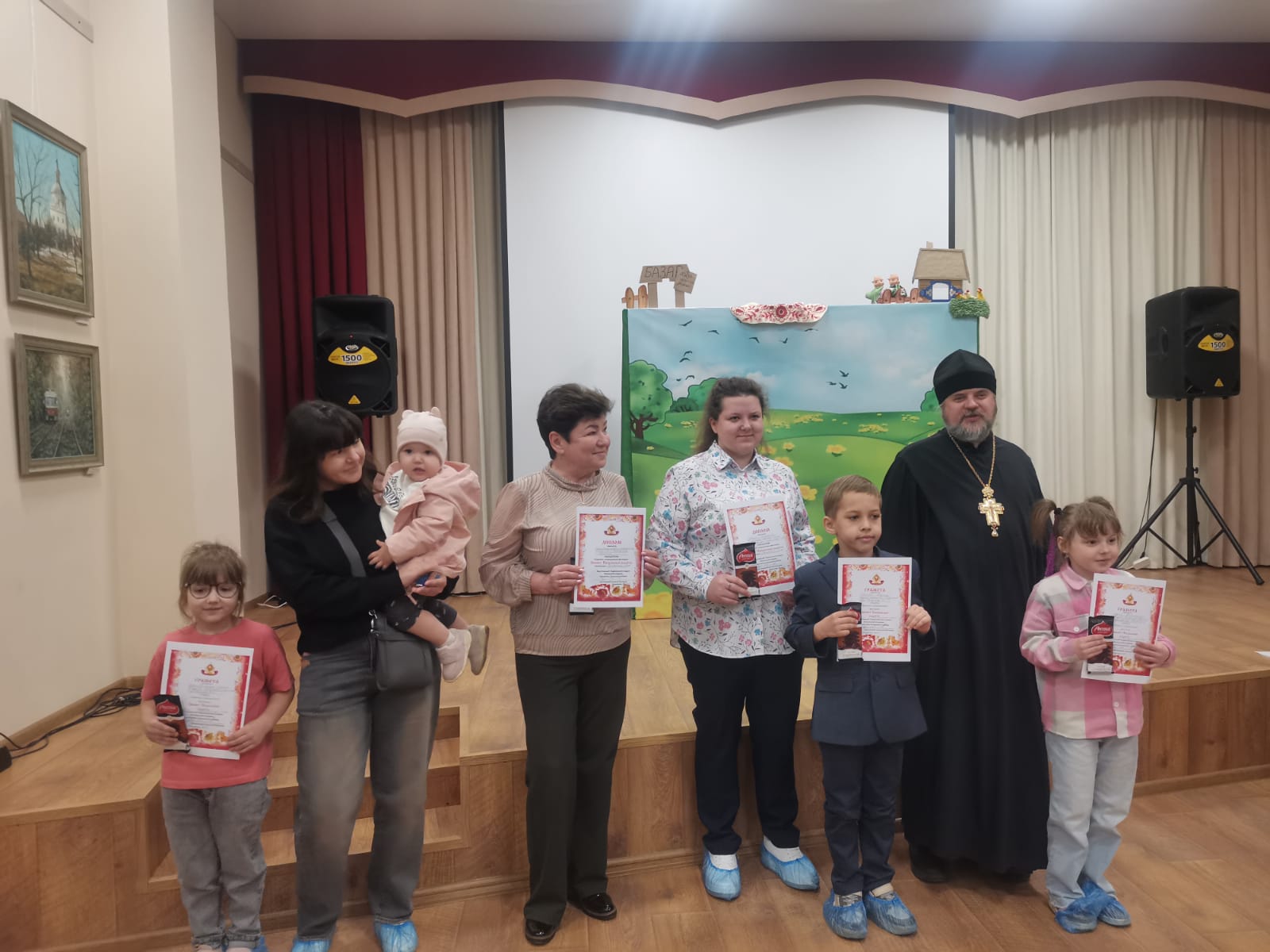 От духовенства Людиновского благочиния на празднике присутствовали настоятель Лазаревского храма протоиерей Михаил Карпенко и клирик Казанского собора иерей Алексий Сначёв. В начале мероприятия отец Михаил поздравил всех присутствующих с воскресным днем и Днем православных женщин и благословил начало доброго дела. После общей молитвы началась церемония награждения победителей и призёров по номинациям: «Композиция», «Рисунок», «Пасхальное яйцо» и «За оригинальность исполнения».