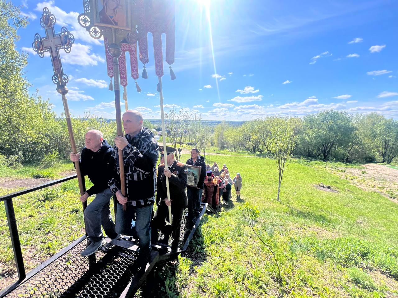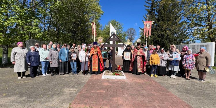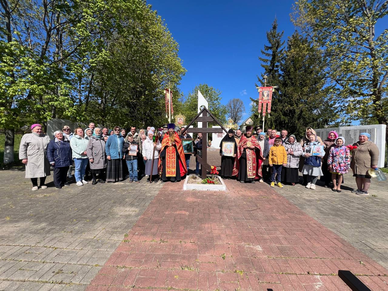 У креста, находящегося на месте мемориала, был отслужен благодарственный молебен Господу Нашему об избавлении от нашествия врага и совершена Лития по всем погибшим в годы Великой Отечественной Войны.