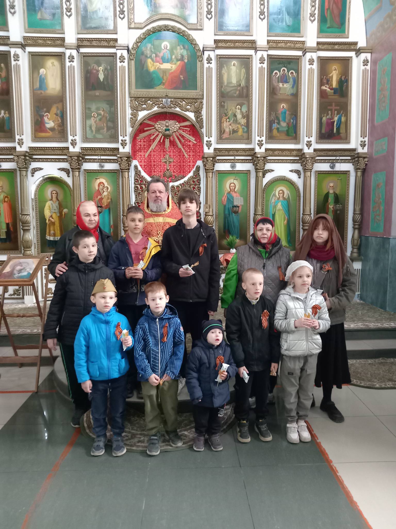 В День Победы храм посетили воспитанники реабилитационного центра «Чайка». Дети прочитали стихи о войне. Батюшка поздравил воспитанников и воспитателей с праздником и подарил всем угощение.