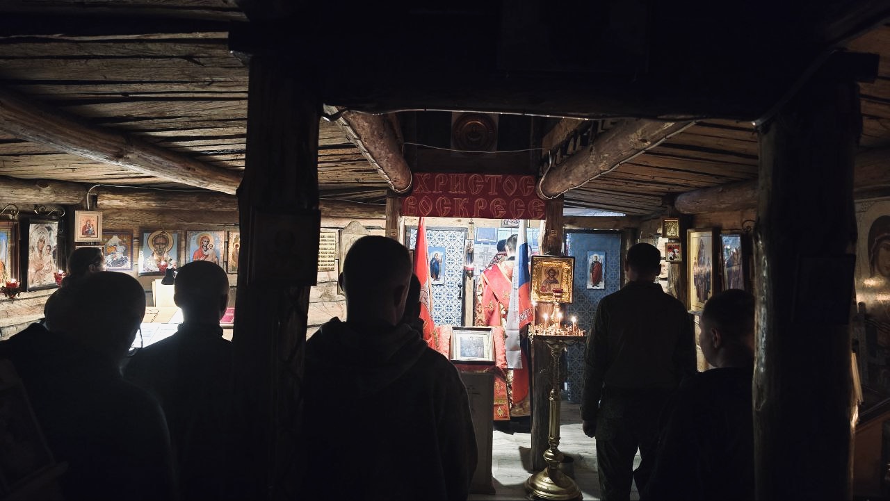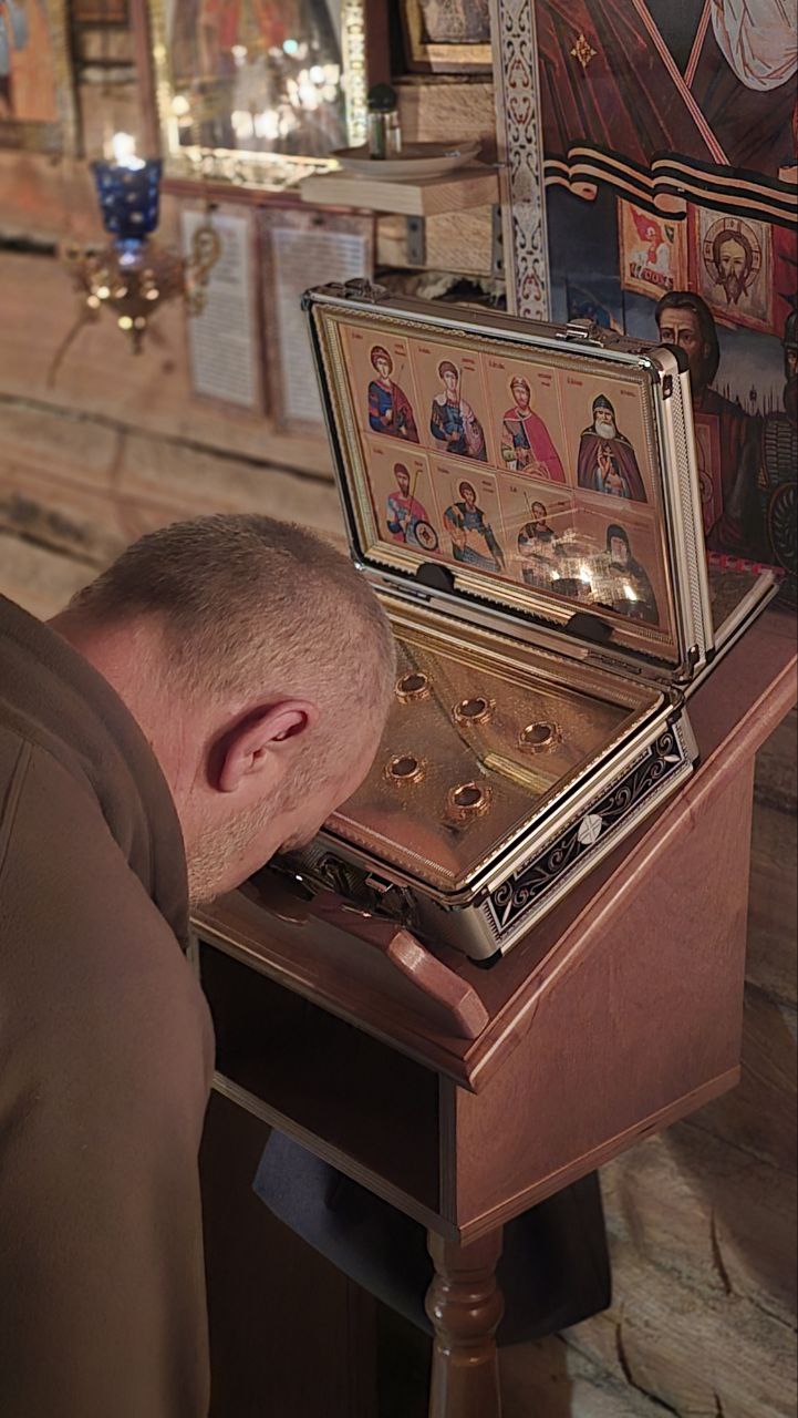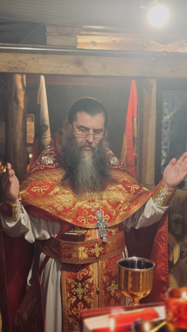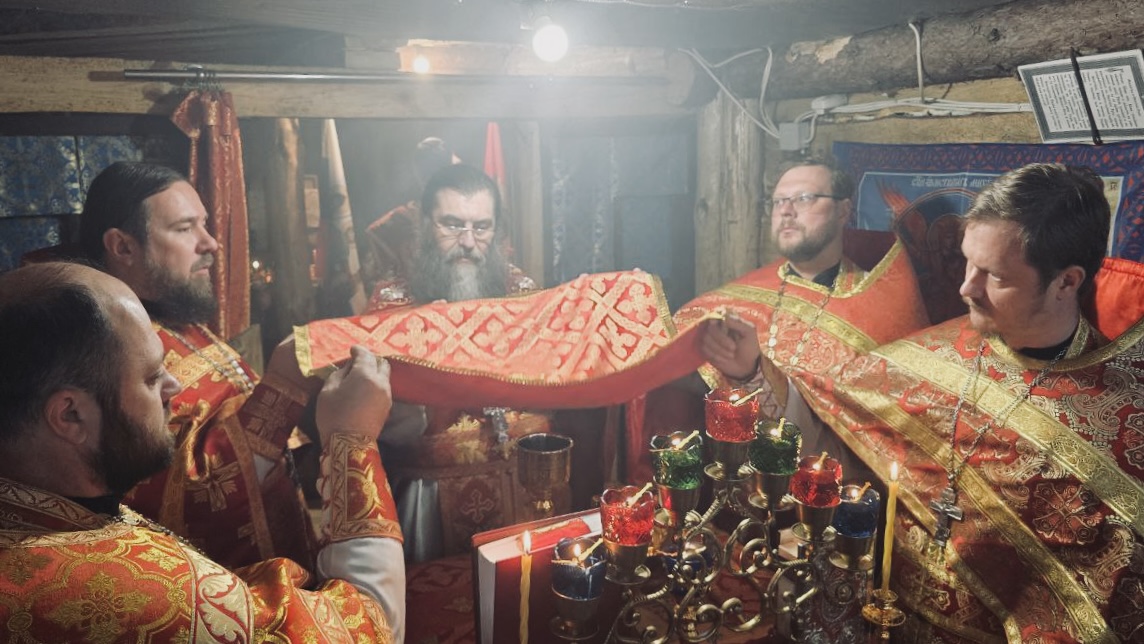 В ходе гуманитарной миссии в зону проведения СВО, духовенство Козельской епархии совершили Божественную литургию в блиндажном храме одного из подразделений ВС РФ.
