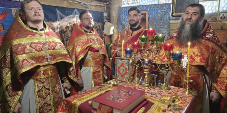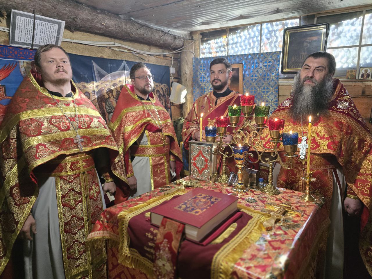 По сугубой ектении была вознесена молитва о Святой Руси, а затем провозглашена заупокойная ектения по всем почившим священнослужителям, воинам и мирным гражданам в зоне проведения СВО.