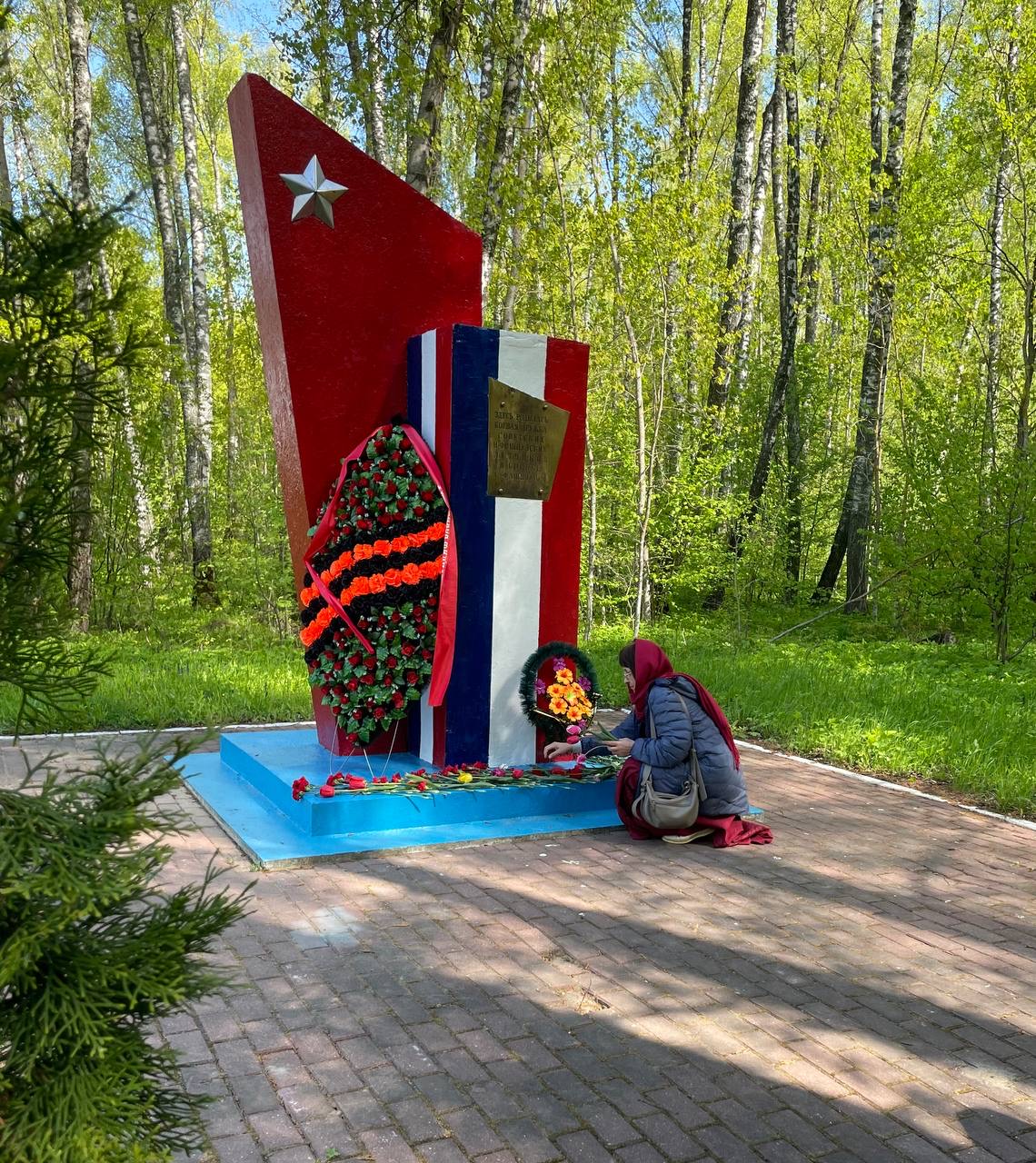 Панихида в День Победы, по почившим вождям и воинам у памятника — мемориала воинов — летчиков авиационного полка Нормандия — Неман