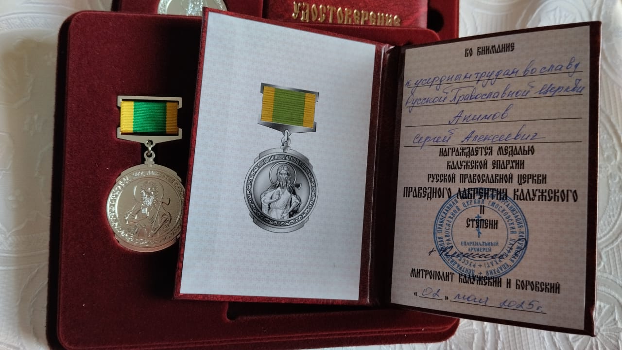 По окончании Литургии настоятель храма «Живоносный Источник» иерей Иоанн Майоров с особой торжественностью отметил усердные труды тех, кто внес неоценимый вклад в созидание и благоукрашение нашей святыни. По благословению Высокопреосвященнейшего Климента, митрополита Калужского и Боровского, временно управляющего Козельской епархией, высокими наградами – медалями Калужской епархии Русской Православной Церкви «Праведного Лаврентия Калужского» II степени «За усердные труды во славу Святой Церкви» – были удостоены: