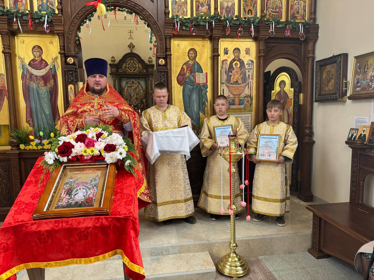 Настоятель храма иерей Иоанн Майоров, вместе с дорогими прихожанами и гостями отслужил торжественно Божественную литургию, а затем был вознесен Благодарственный молебен Господу Богу за Его неисчислимые милости и щедроты, явленные приходу храма на протяжении этого года.