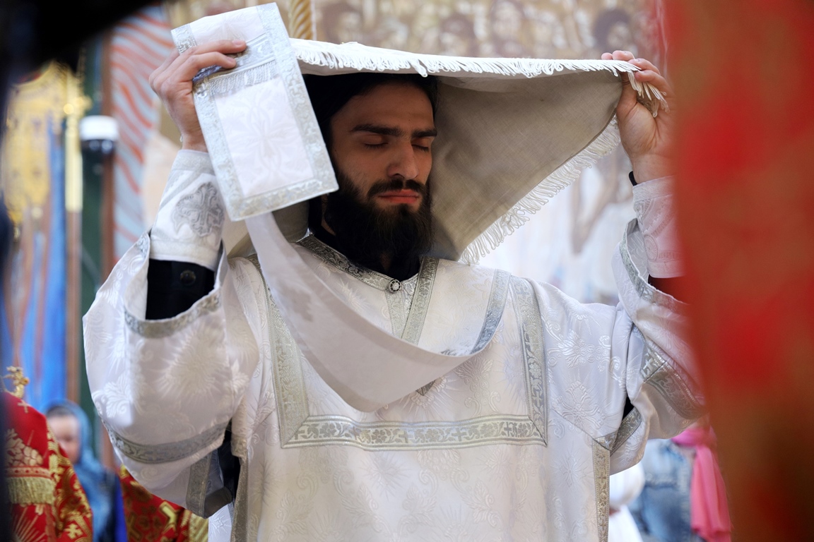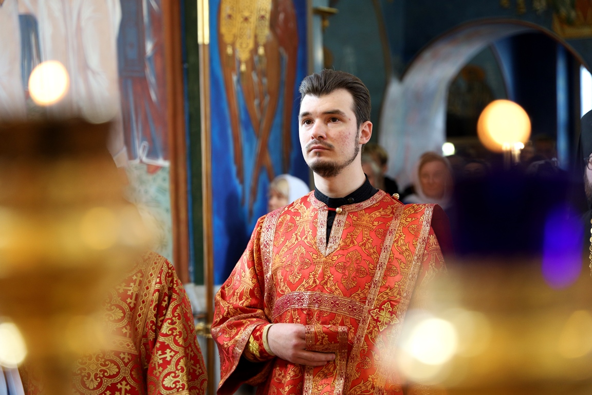 После Великого входа Высокопреосвященнейший Климент совершил пресвитерскую хиротонию диакона Дамиана Рупасова, клирика храма в честь Сошествия Святого Духа г. Козельска.