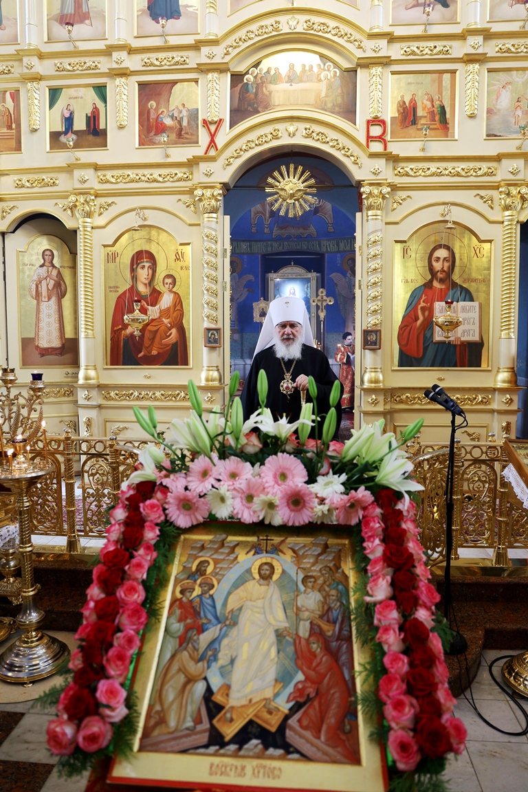 В завершение богослужения митрополит Климент поздравил причастников с принятием Святых Христовых Таин и обратился со словом назидания и преподал всем архипастырское благословение.