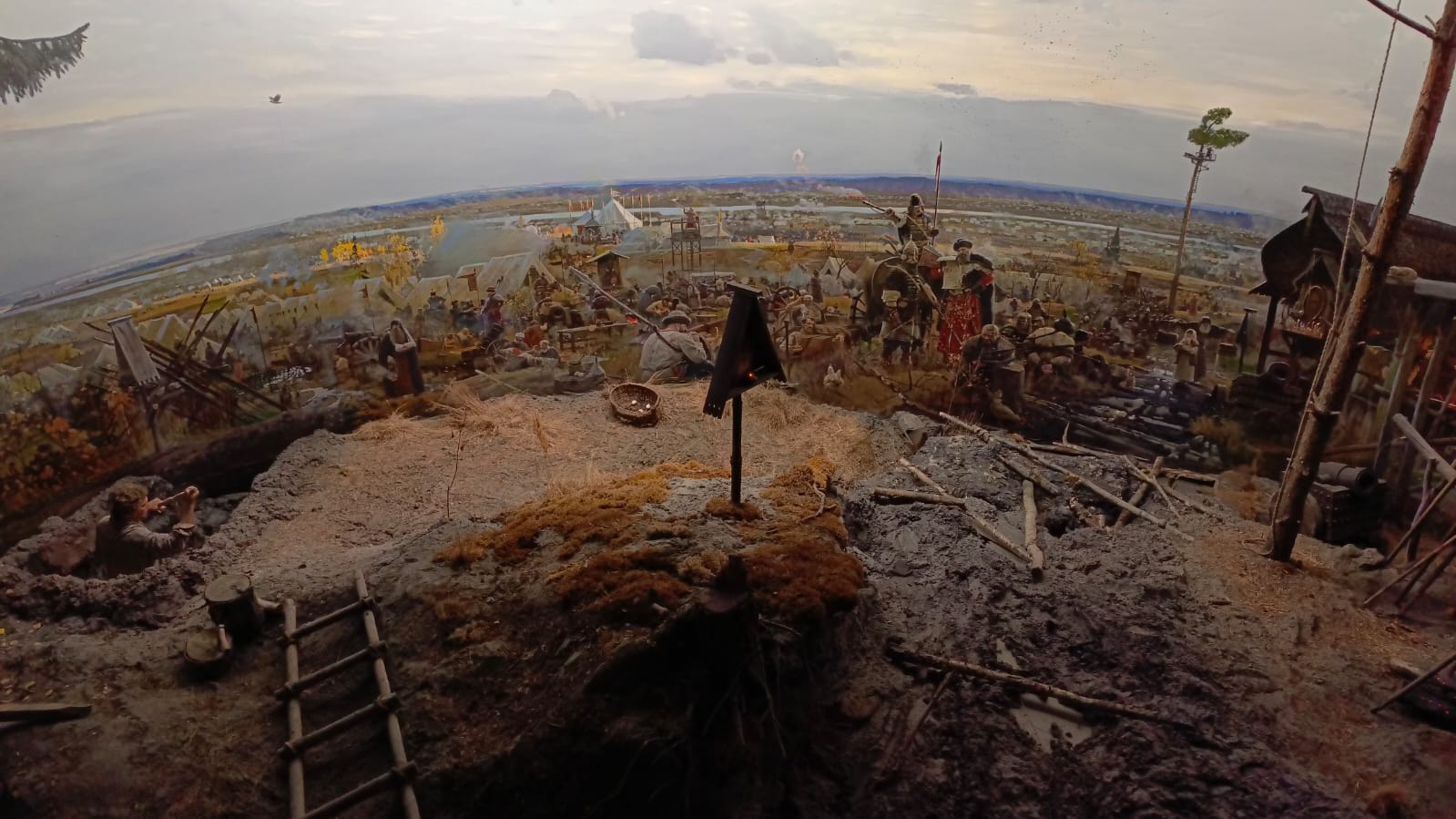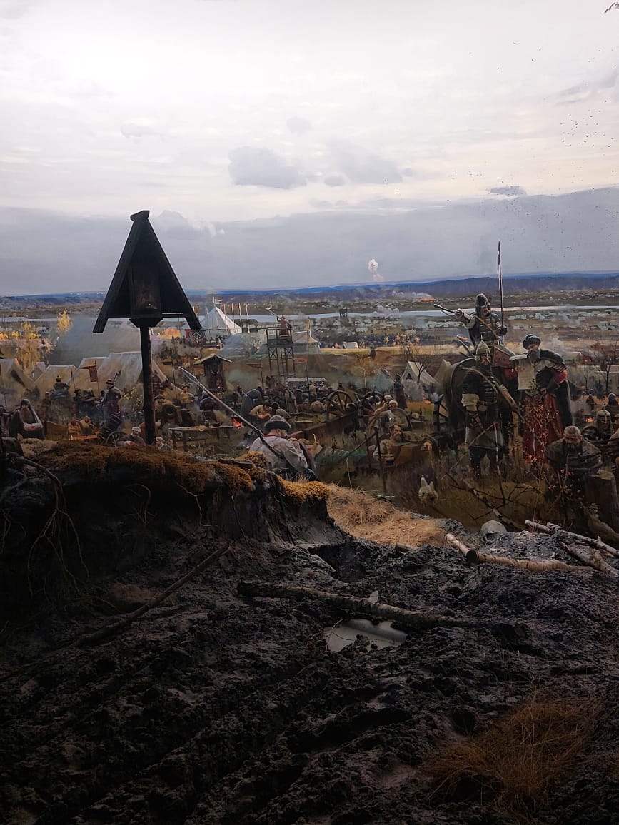 Паломники побывали в селе Дворцы Калужской области, где посетили Музей – диораму «Великое Стояние на реке Угре». Здесь для них экскурсовод провёл интересную и очень познавательную экскурсию.