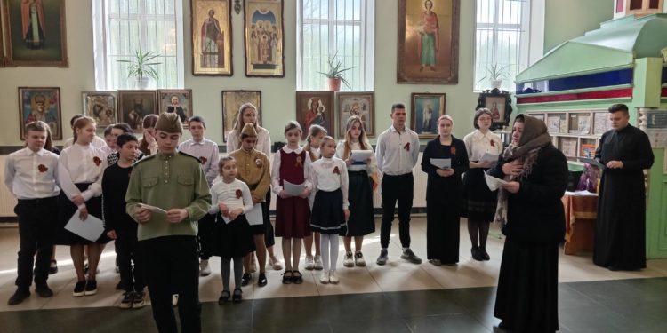 В воскресной школе «Радонеж» храма преподобного Сергия Радонежского города Людиново прошел открытый урок, посвященный 80-летию Великой Победы