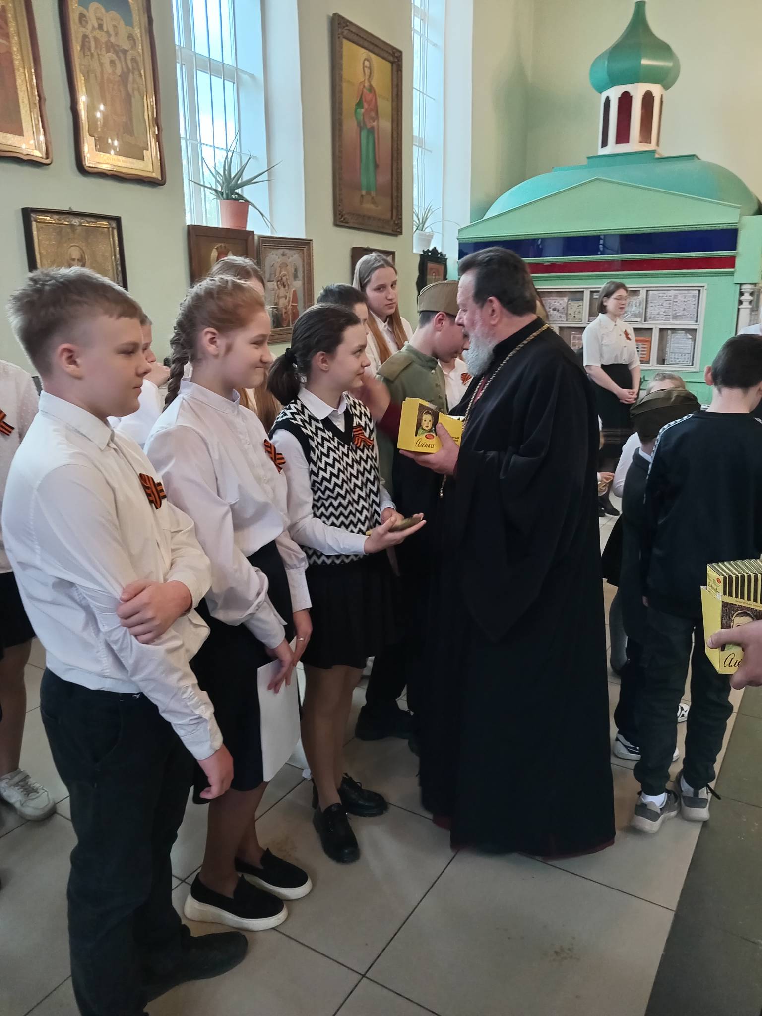 11 мая в воскресной школе «Радонеж» храма преподобного Сергия Радонежского города Людиново по благословению настоятеля храма протоиерея Василия Биляка, прошел открытый урок, посвященный 80-летию Великой Победы.
