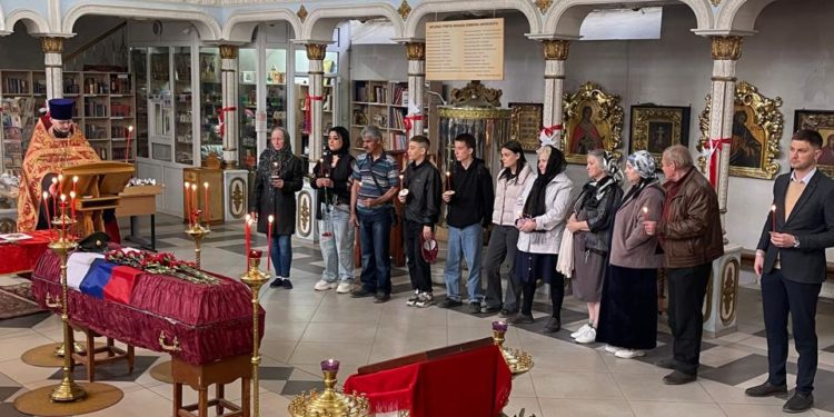 В Казанском соборе города Людиново прошло отпевание погибшего воина