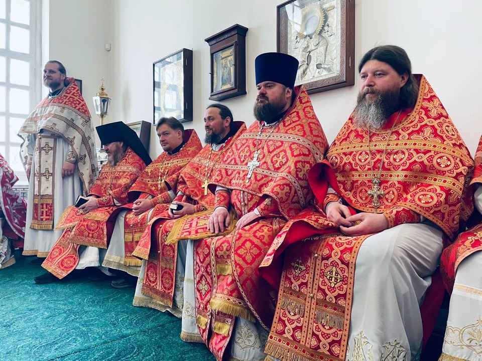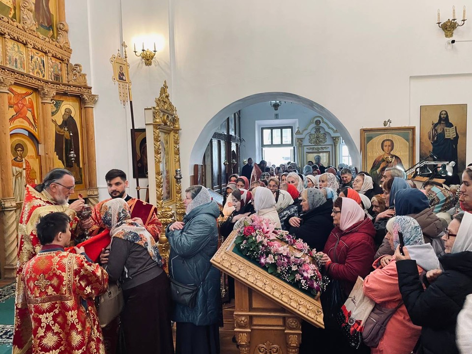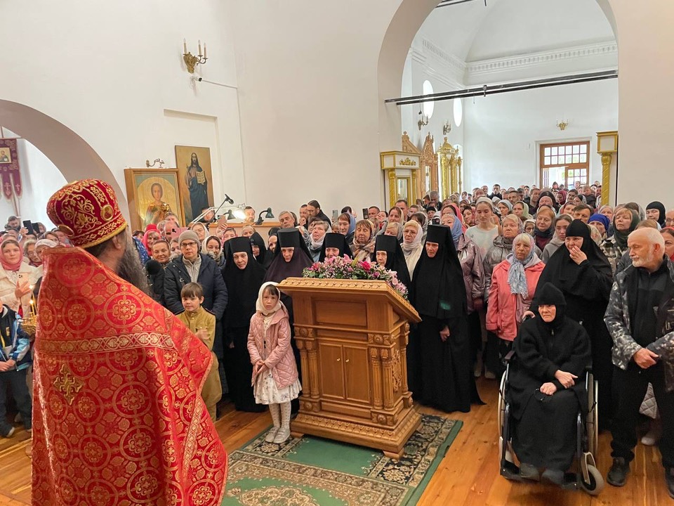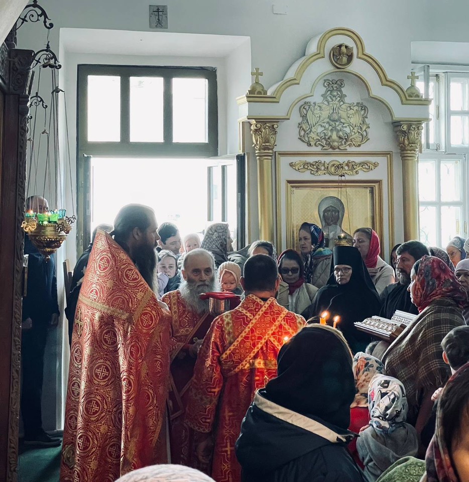На литургии были возглашены особые прошения и молитва о Святой Руси. По заупокойной ектении возглашена вечная память по приснопамятной старице и её почившим сродникам. По запричастном стихе архимандрит Михаил обратился к пастве с проповедью.