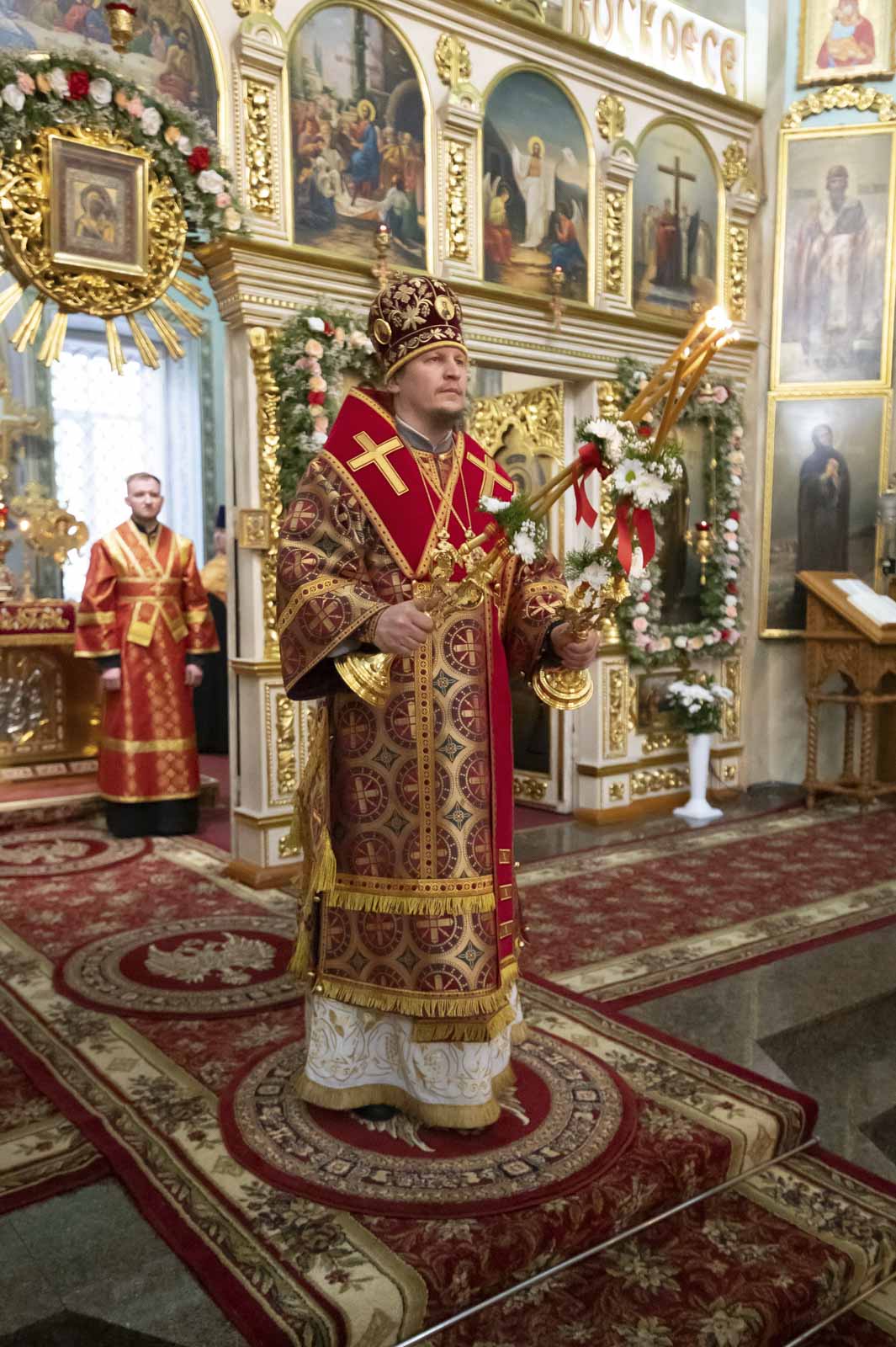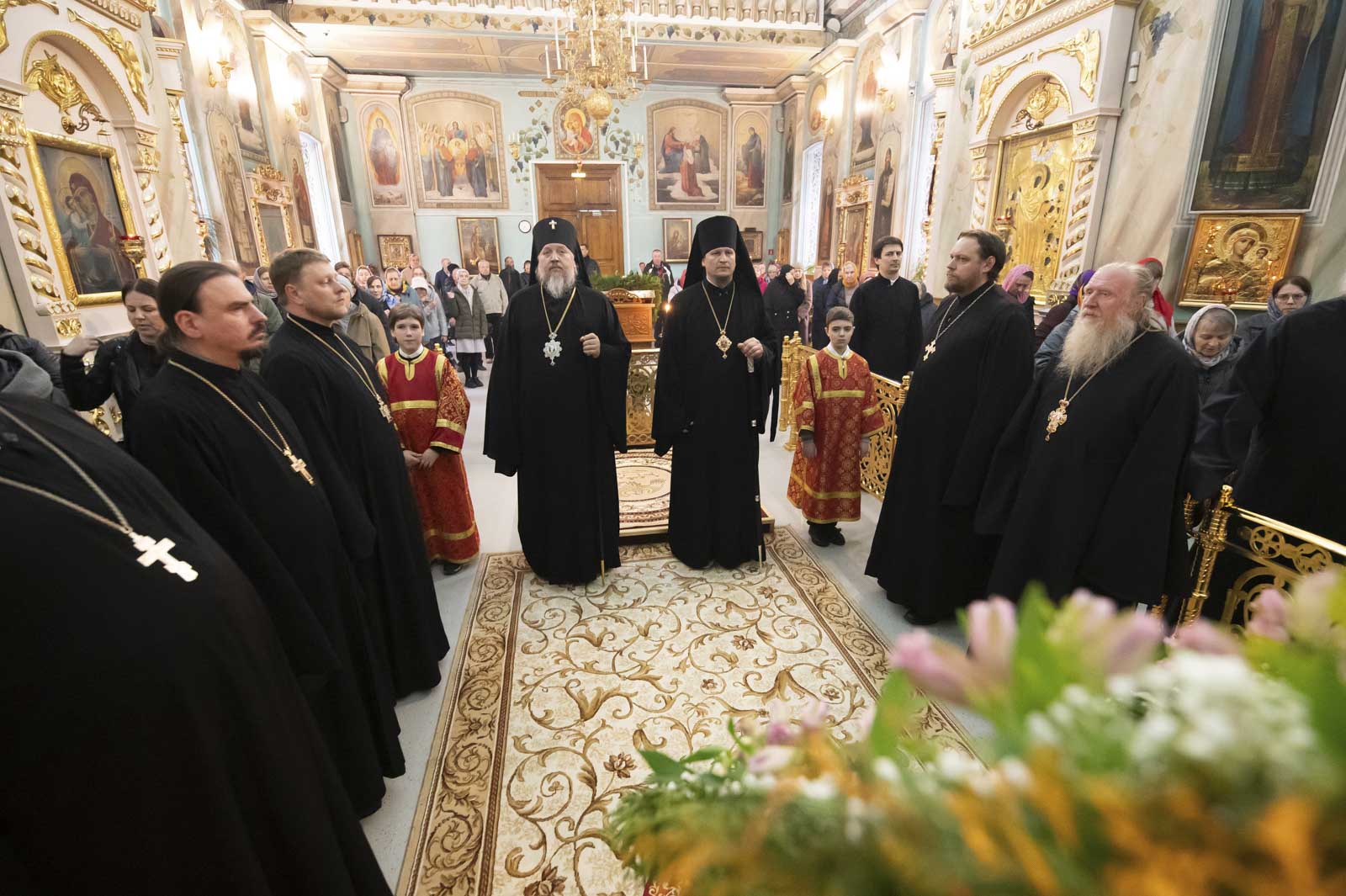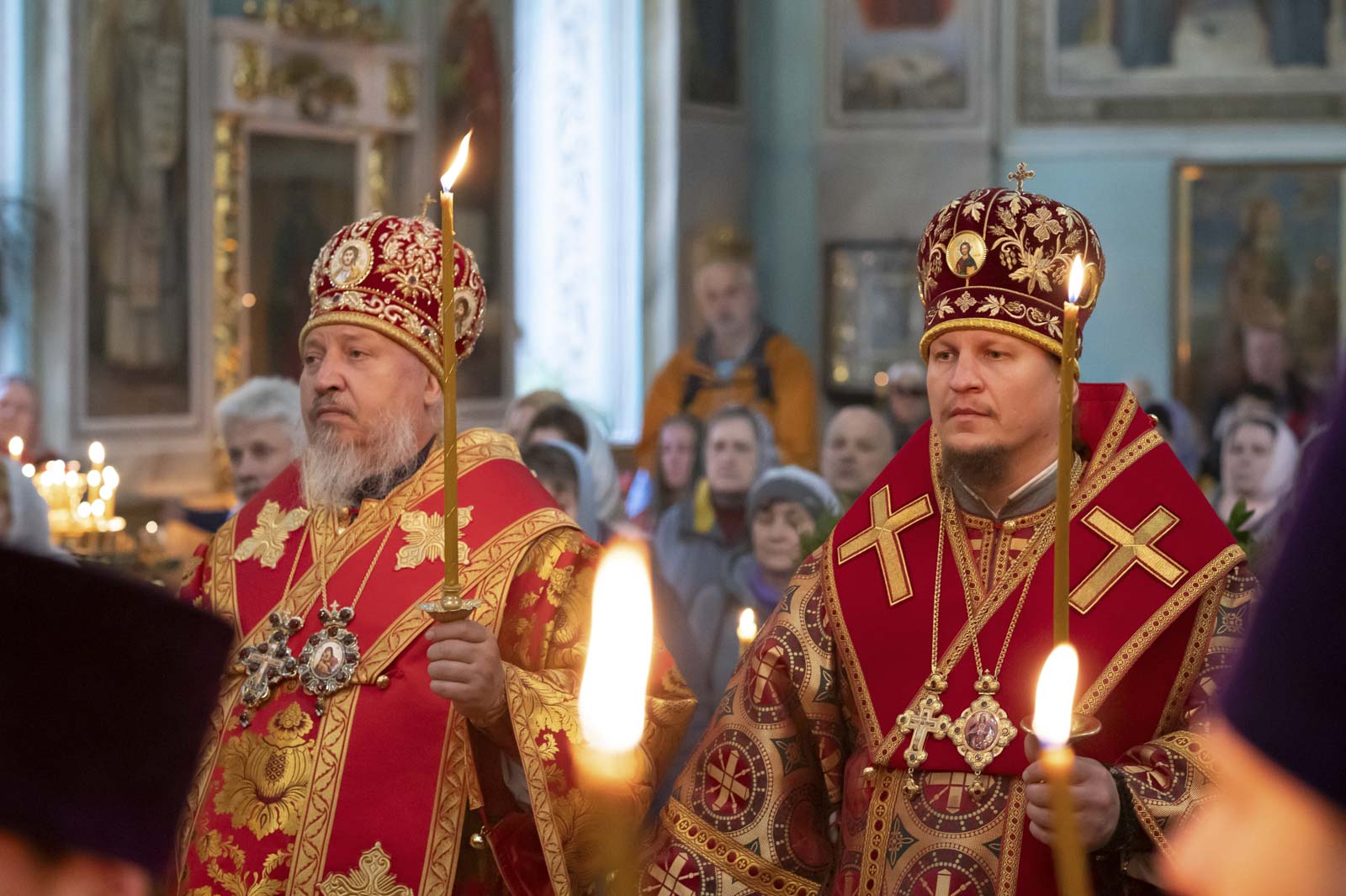 Вечером епископ Макарий в сослужении архиепископа Гомельского и Жлобинского Стефана совершил Всенощное Бдение в канун Недели о Самаряныне в Петро-Павловском соборе г. Гомеля. Перед богослужением владыки возложили цветы к поклонному кресту в память об архипастырях и священнослужителях, пострадавших в годы гонений на веру, на территории Собора. За богослужением епископ Макарий помазал верующих освященным елеем и раздал иконки великомученика Георгия Победоносца.