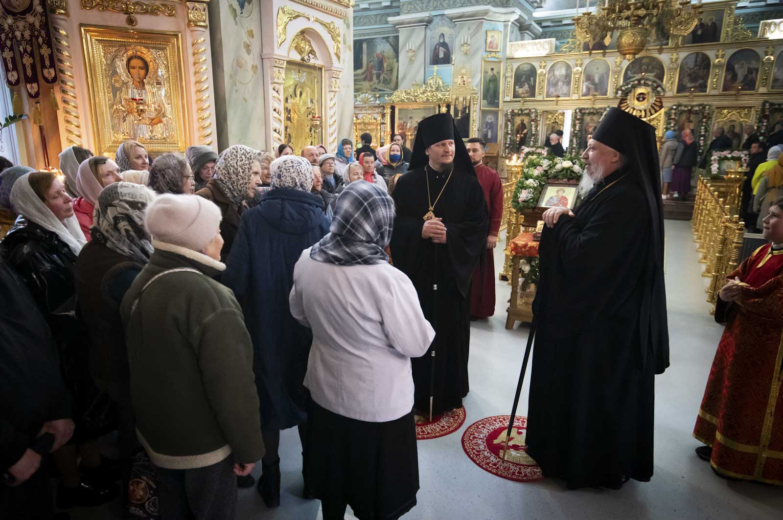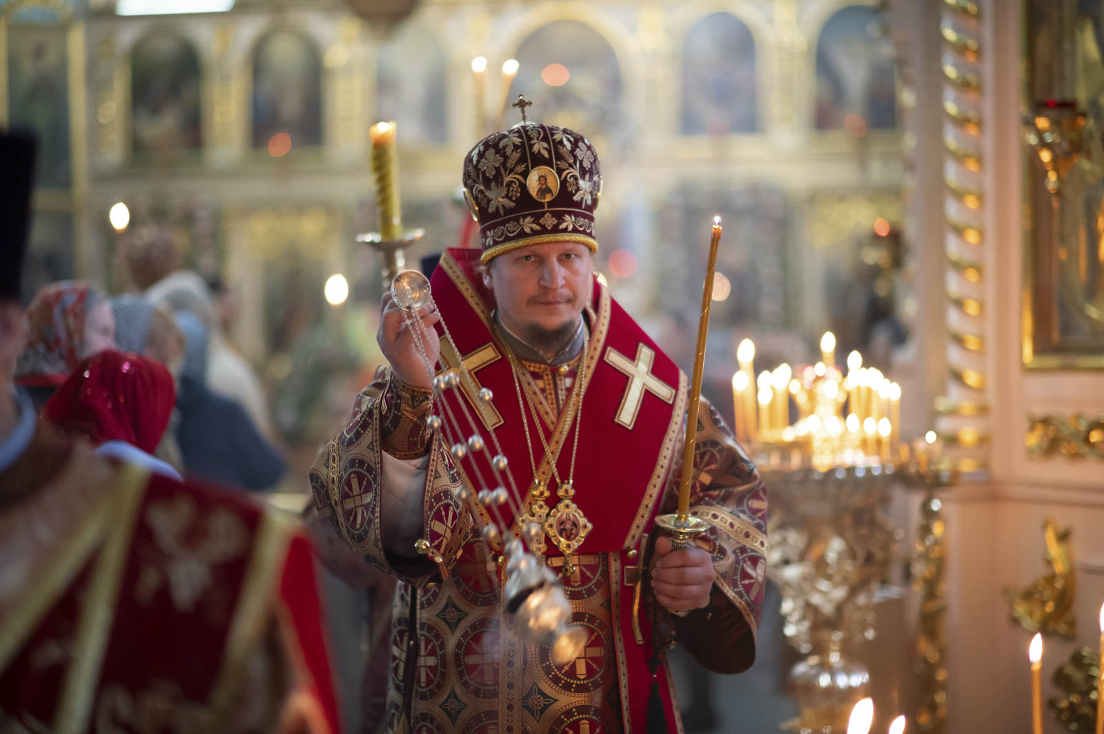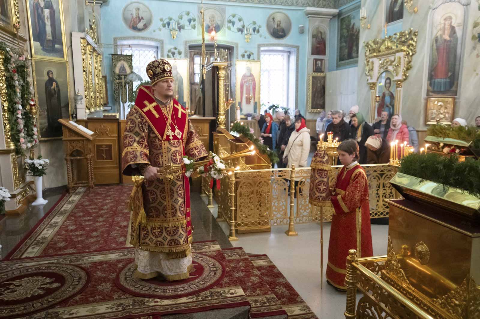 Вечером епископ Макарий в сослужении архиепископа Гомельского и Жлобинского Стефана совершил Всенощное Бдение в канун Недели о Самаряныне в Петро-Павловском соборе г. Гомеля. Перед богослужением владыки возложили цветы к поклонному кресту в память об архипастырях и священнослужителях, пострадавших в годы гонений на веру, на территории Собора. За богослужением епископ Макарий помазал верующих освященным елеем и раздал иконки великомученика Георгия Победоносца.