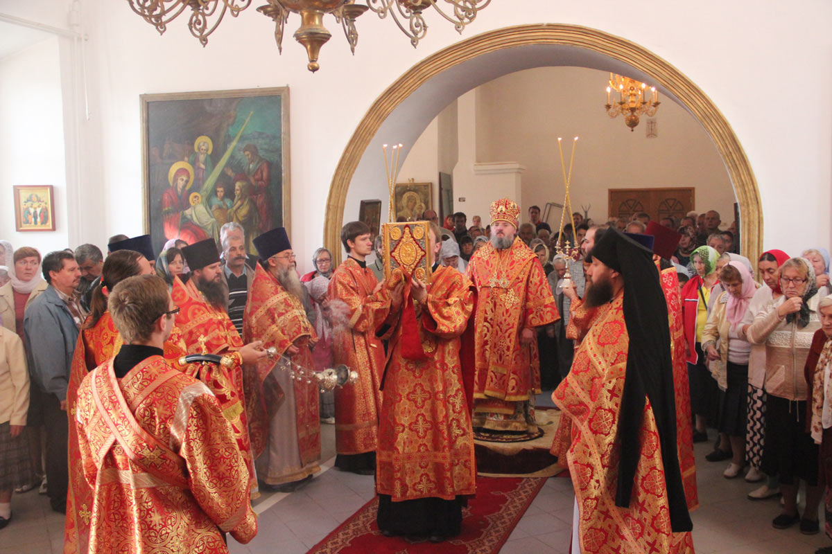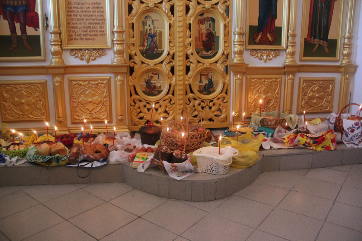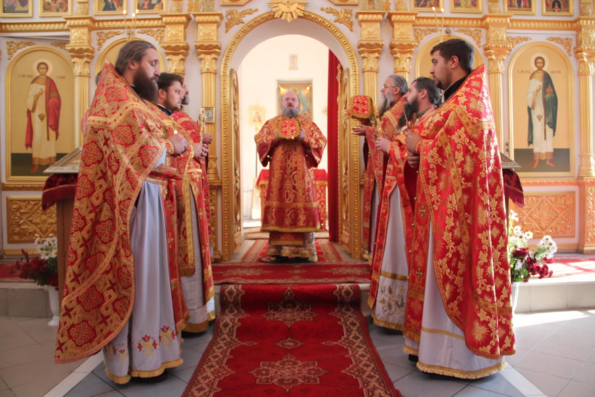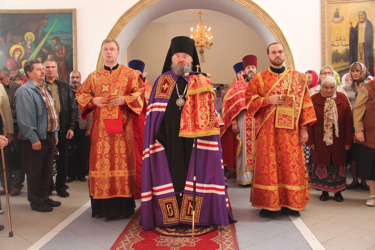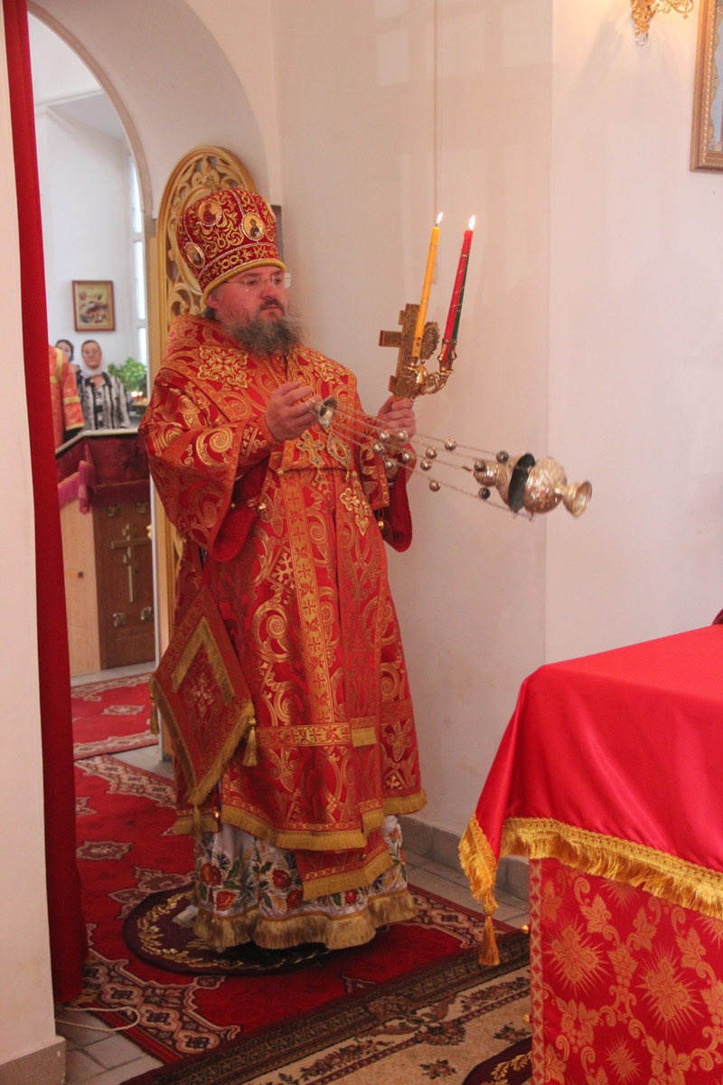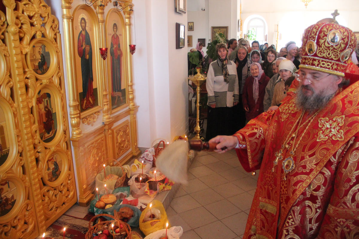 Его Преосвященству сослужили: духовник епархии протоиерей Алексий Жиганов, благочинный округа протоиерей Иоанн Староста, протоиерей Михаил Карпенко, иерей Артемий Арутюнян, иеромонах Иеремия (Ильченко), диакон Евгений Ковригин и диакон Тихон Худяков. По заамвонной молитве состоялся пасхальный крестный ход вокруг храма, в завершении которого владыка обратился к богомольцам с архипастырским словом, а затем совершил освящение куличей и крашенных яиц.