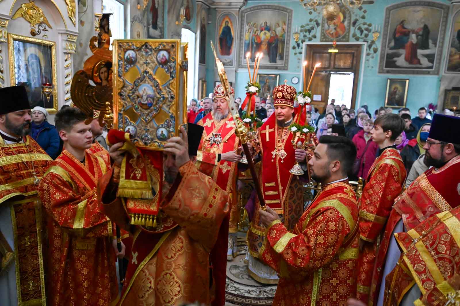 В Неделю 5-ю по Пасхе, о самаряныне, епископ Козельский и Людиновский Макарий совершил Божественную Литургию в Петро-Павловском соборе города Гомеля