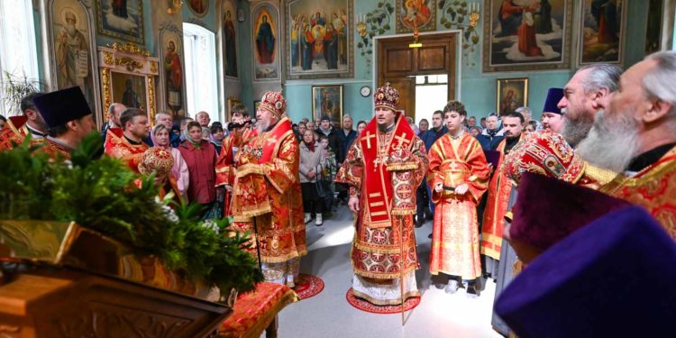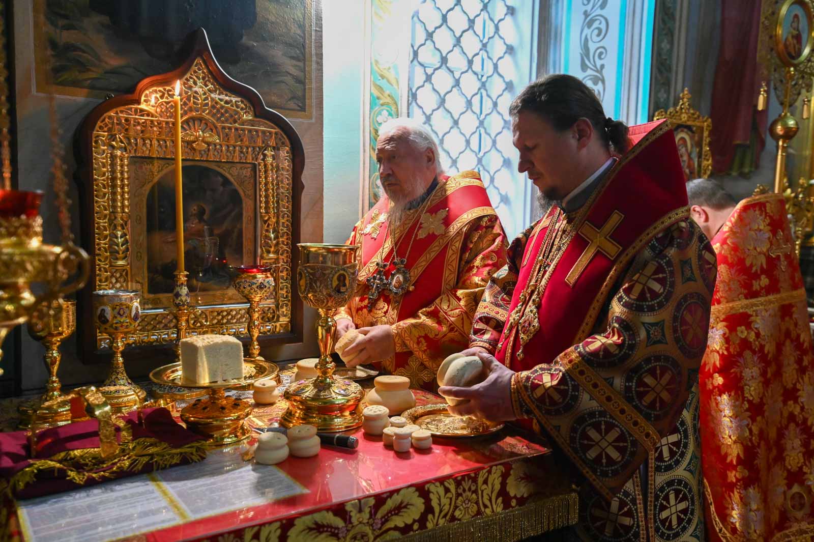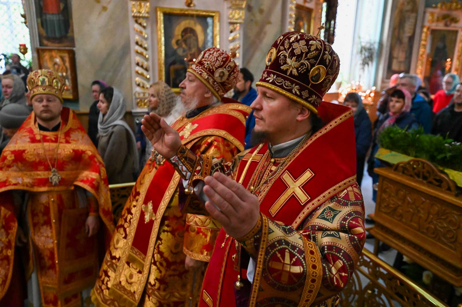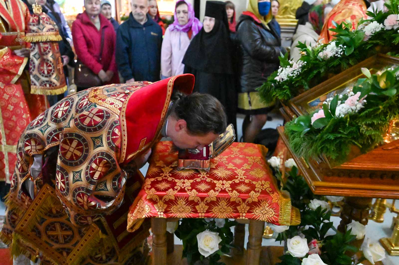 Перед началом богослужения архипастыри приложились к частице