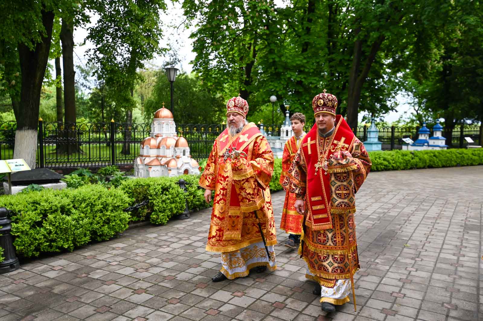 По окончании богослужения архипастыри возложили цветы к памятнику священномученику Митрофану (Краснопольскому), первому епископу Гомельскому, и пропели величание святому.