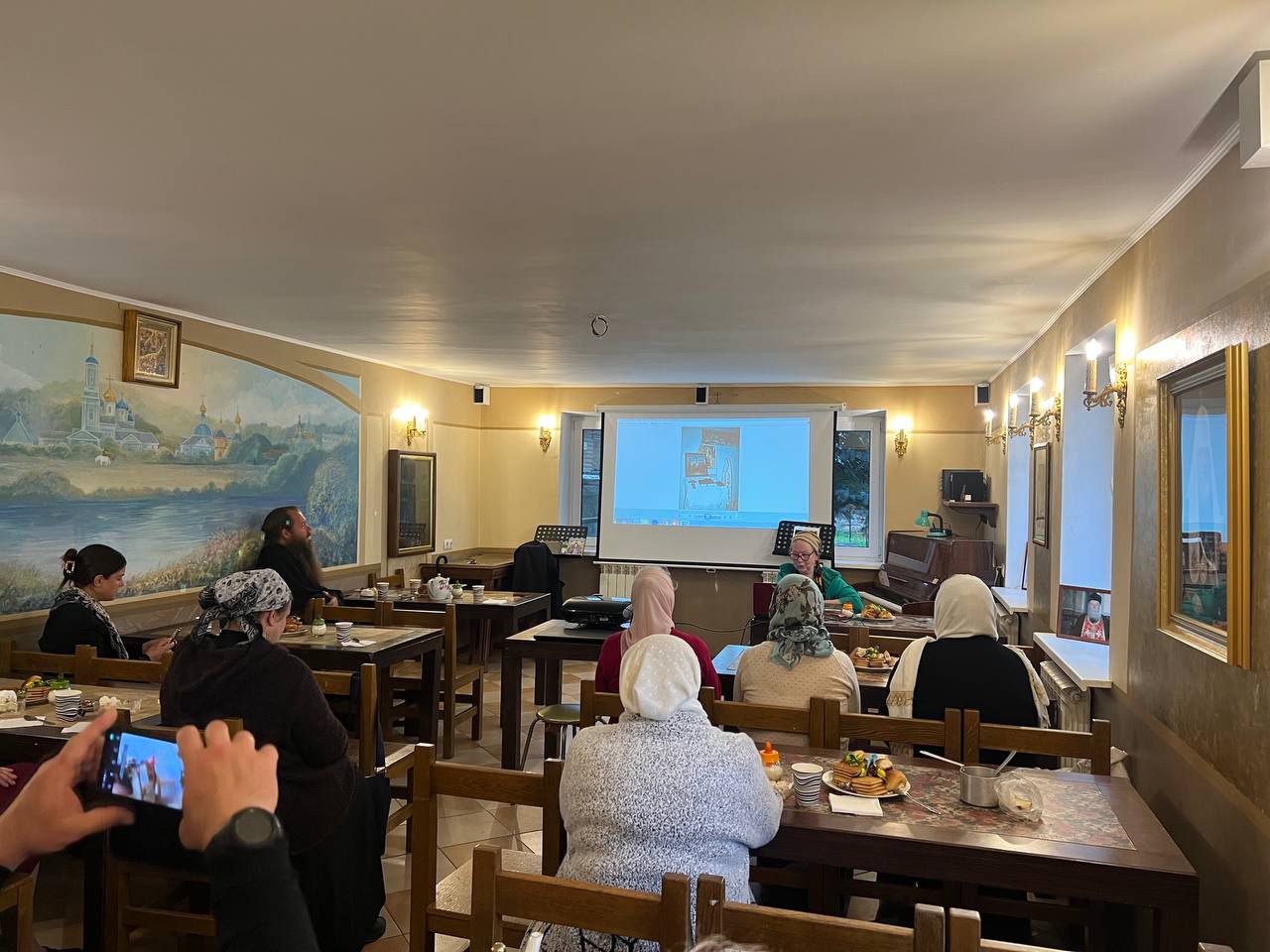 Слушатели узнали об особенных моментах переписки великих князей с настоятелем Свято-Троицкой Сергиевой Приморской Мужской Пустыни — святителем Игнатием, их общении и единодушии. Также лектор рассказала о встречах представителей семьи с будущим Патриархом Тихоном (Беллавиным) в период его служения на Виленской кафедре, о пророческом подарке и о грядущем мученическом венце.