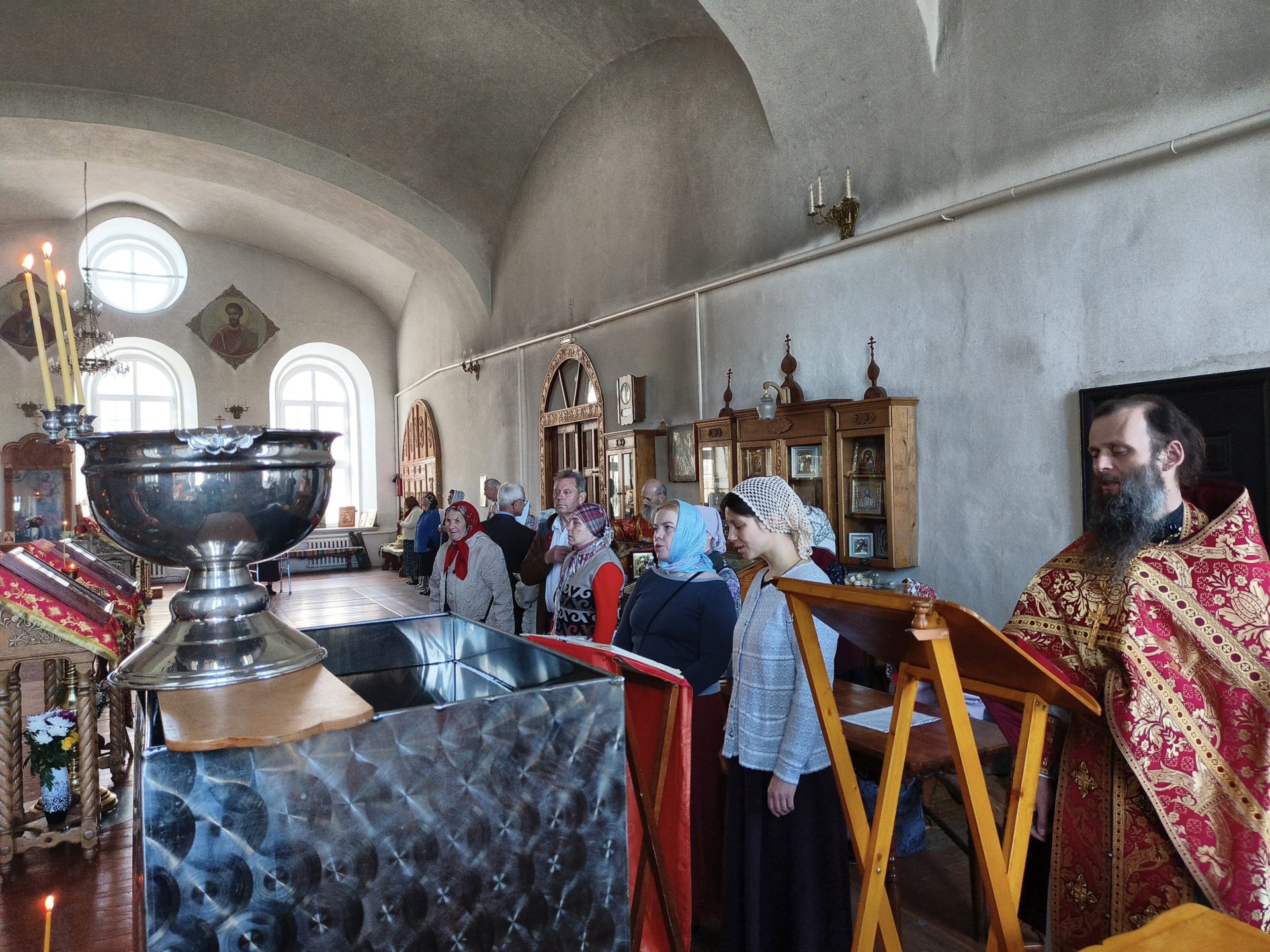 Божественную литургию совершили настоятель храма иерей Сергий Дрозд и клирик храма иеромонах Тихон (Клинов). На богослужении молились прихожане и гости храма. После славления отец Сергий благословлял собравшихся старинным Крестом-мощевиком и раздавал буклеты об истории храма.