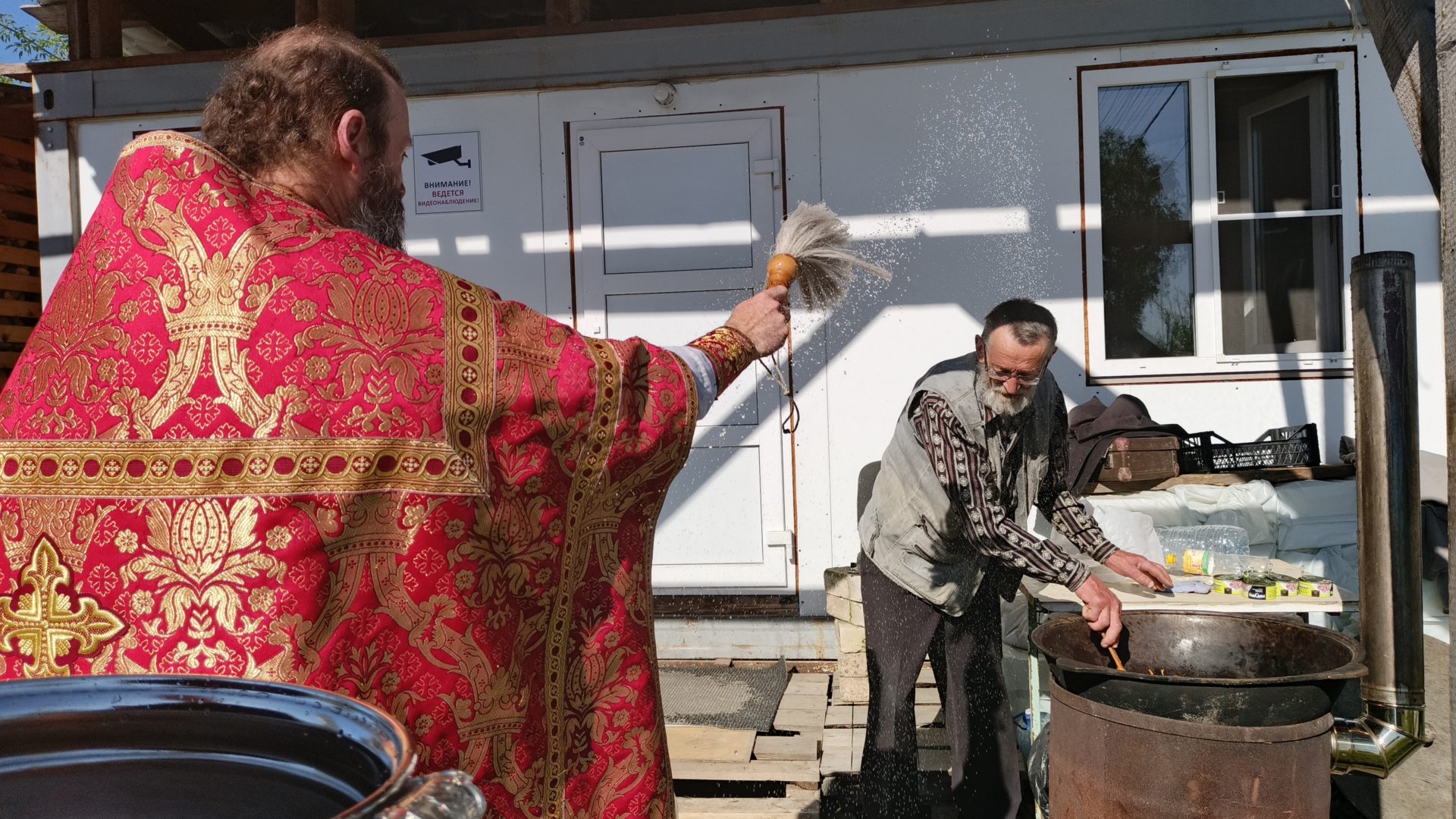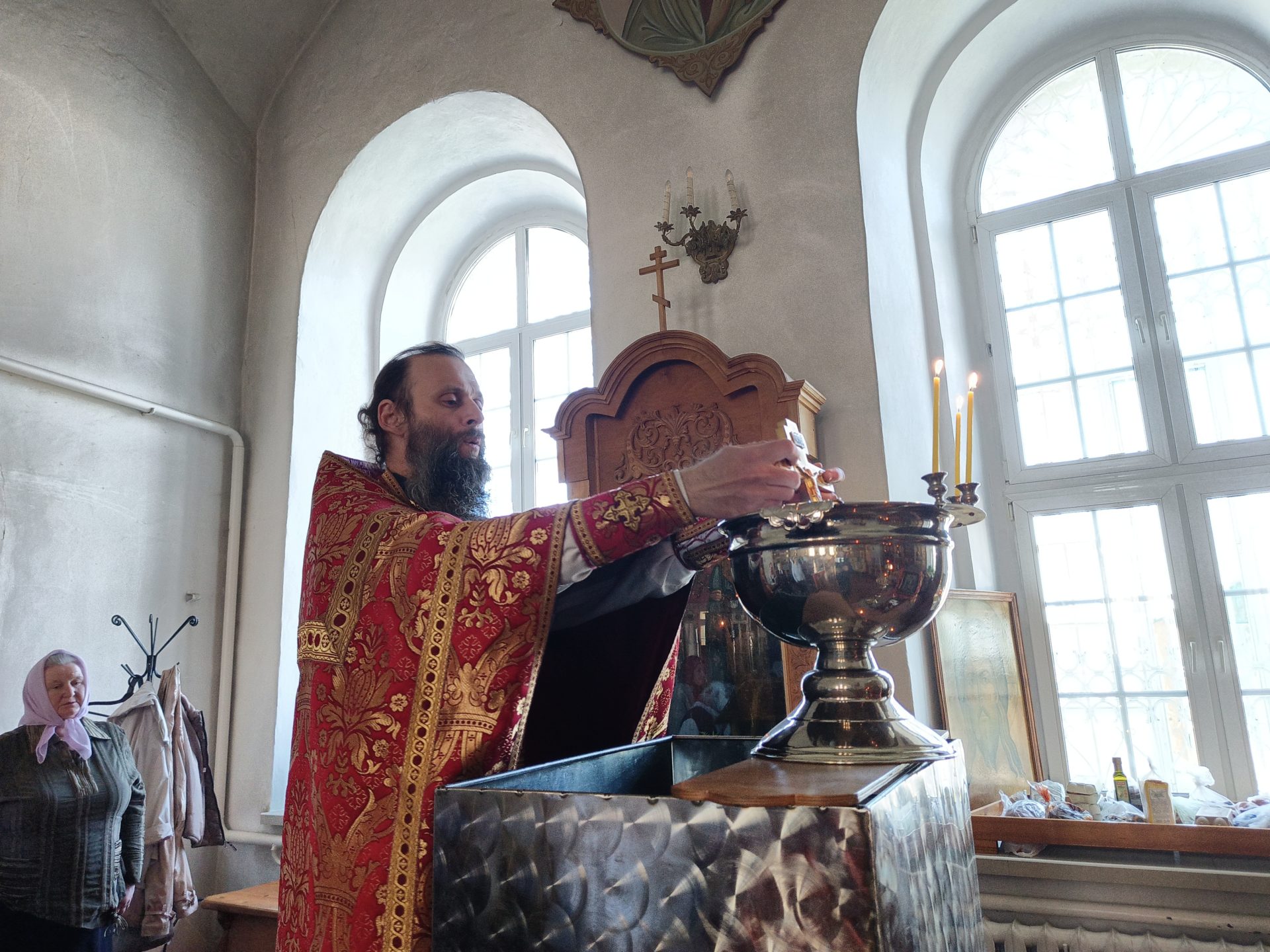 Перед Литургией был отслужен водосвятный молебен с окроплением храма и прилегающей территории.