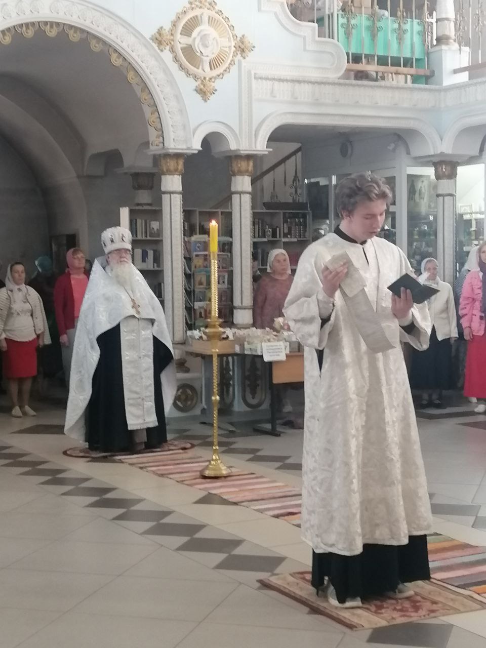 В Казанском соборе города Людиново накануне праздника, 28 мая 2025 года, вечером, было совершено всенощное бдение с литией, которое возглавил настоятель собора протоиерей Алексий Жиганов в сослужении диакона Никиты Агарёва.