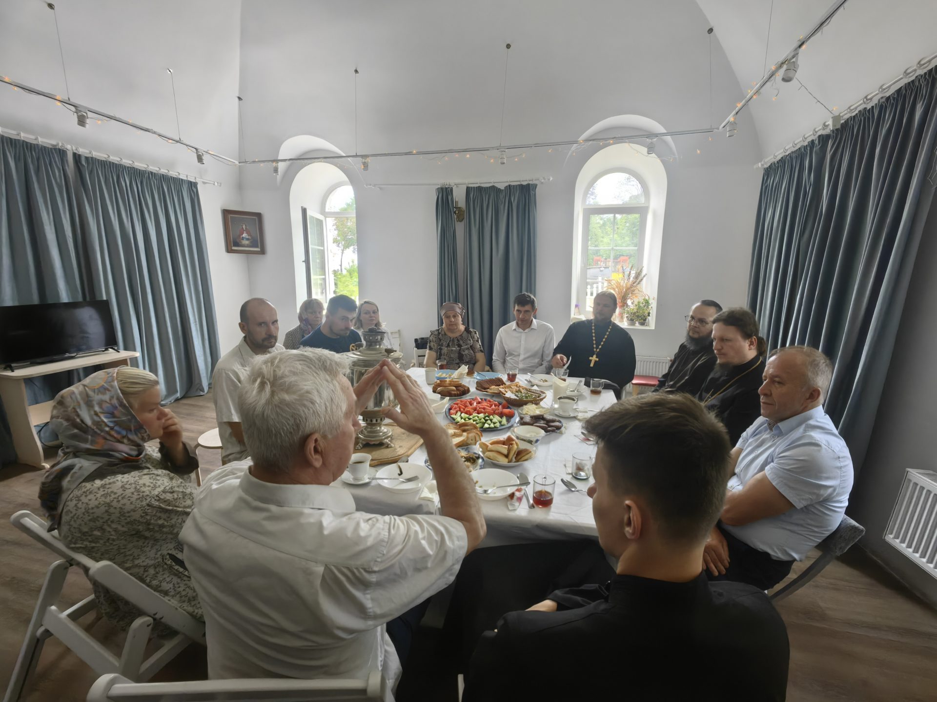После этого за чаем епископ Макарий обсудил с педагогическим составом и родителями особенности организации учебного процесса, содержание образовательной программы по разным предметам, а также хозяйственные вопросы.
