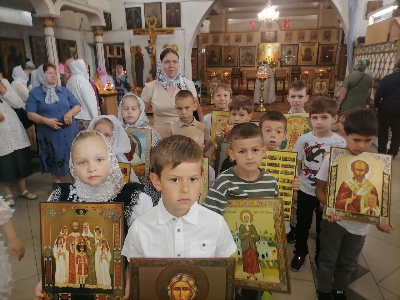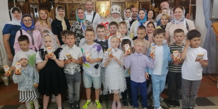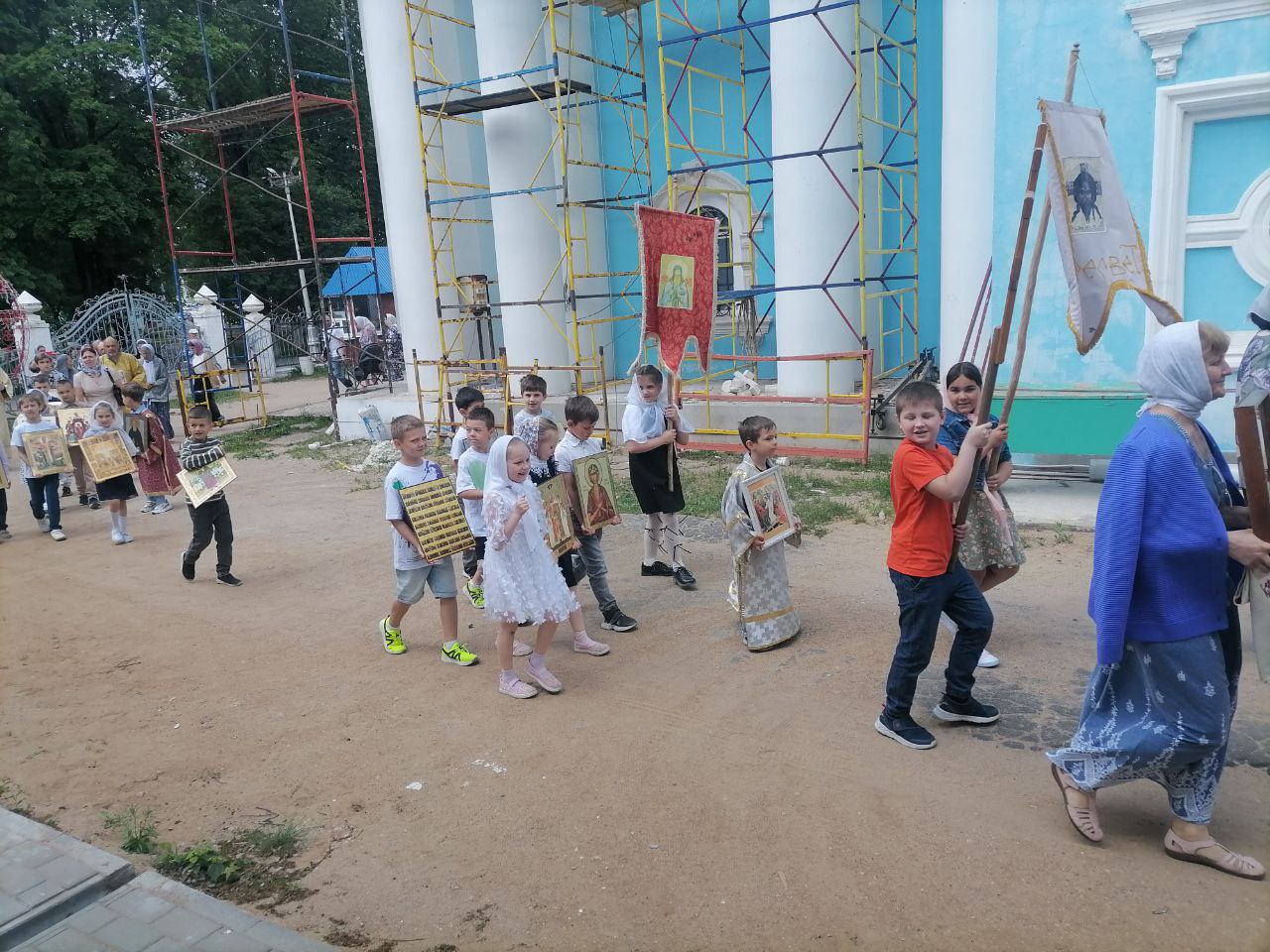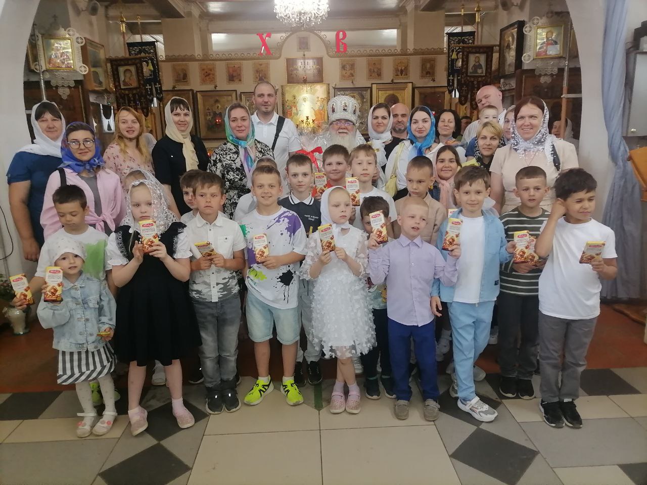 В воскресный день, 1 июня 2025 года, в Казанском соборе вместе с взрослыми прихожанами в храме молились юные прихожане – дети, а также ученики православного класса средней школы №2 со своим педагогом Наталией Смирновой, их родители, братья и сёстры. В свой праздник многие детки причастились Святых Христовых Таин. После крестного хода вокруг храма настоятель собора протоиерей Алексий Жиганов поздравил всех с Днём защиты детей, пожелав помощи Божией и заступничества Царицы Небесной, а также хорошего летнего отдыха. Всем юным прихожанам были подарены шоколадки и сладости.