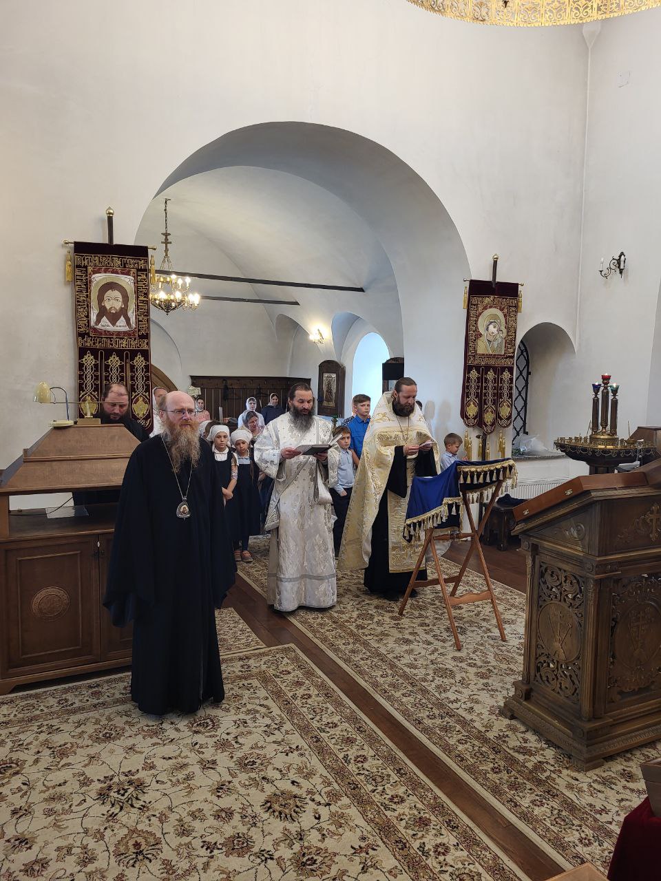 Молебен служил настоятель храма, директор гимназии, иерей Дионисий Капустин. На богослужении присутствовали епископ Можайский Иосиф, наместник Оптиной Пустыни, братия монастыря, учителя, учащиеся гимназии и их родители.