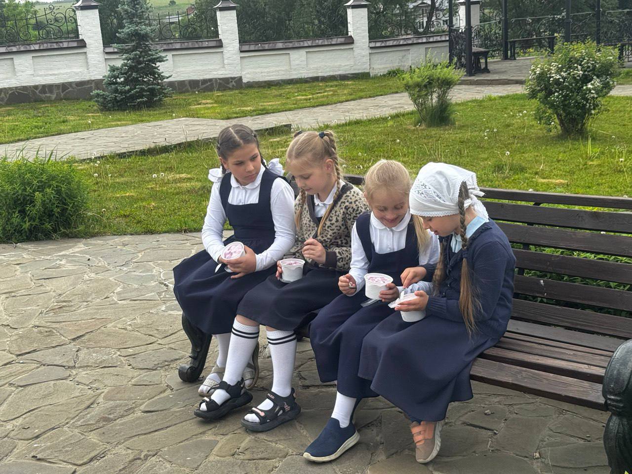 Пока взрослые общались, дети играли на территории храма и лакомились сладостями.  Встреча прошла в теплой, семейной атмосфере.
